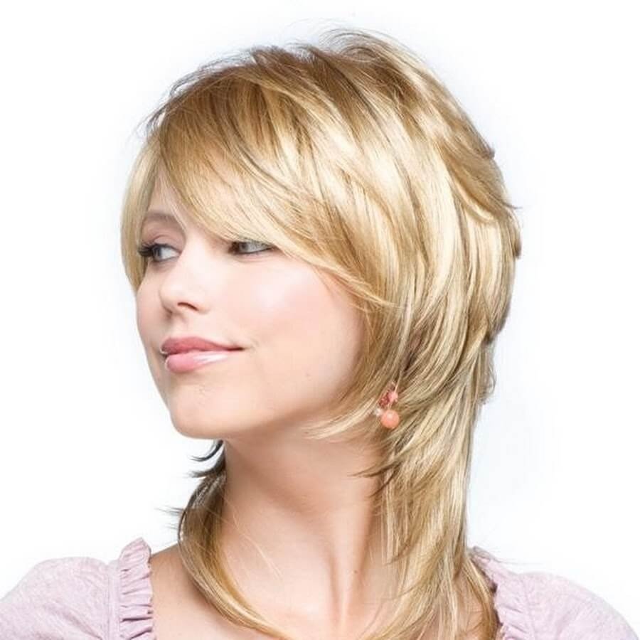 Стрижка каре Каскад с челкой на круглое лицо на средние