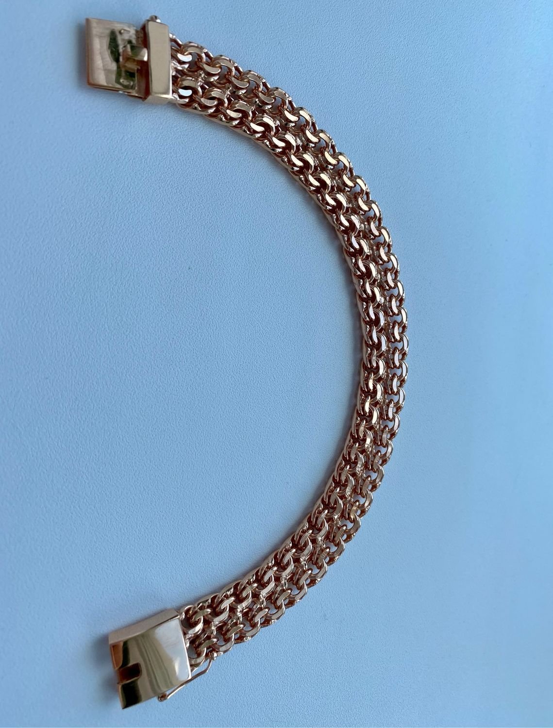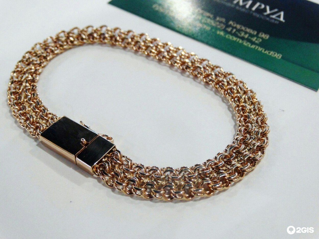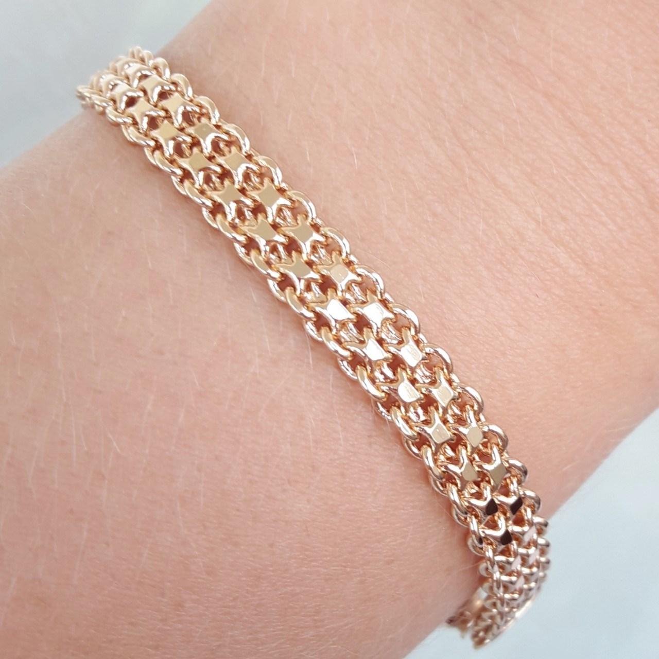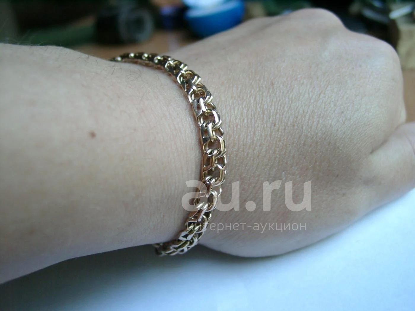 Красцветмет браслет золотой плетение бисмарк двойной НБ 12-073