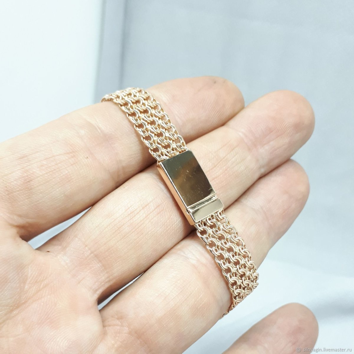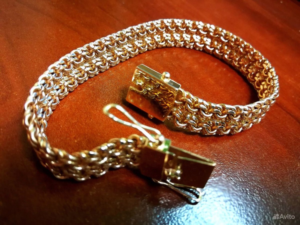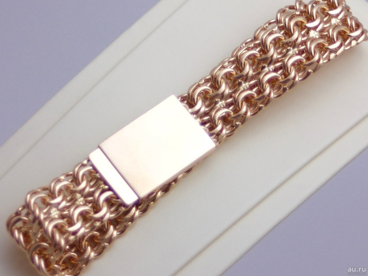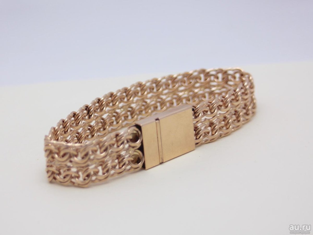 Красцветмет браслет золотой плетение бисмарк двойной НБ 12-073