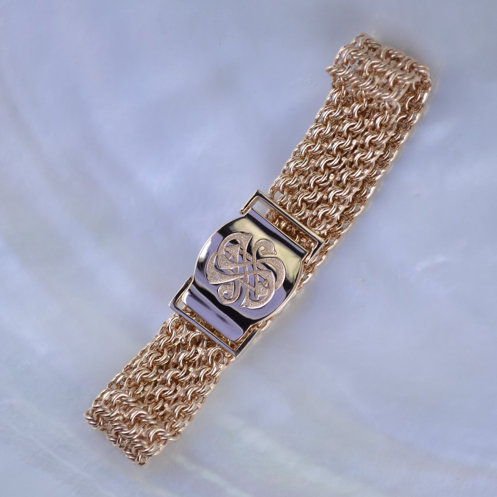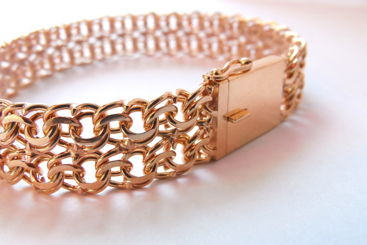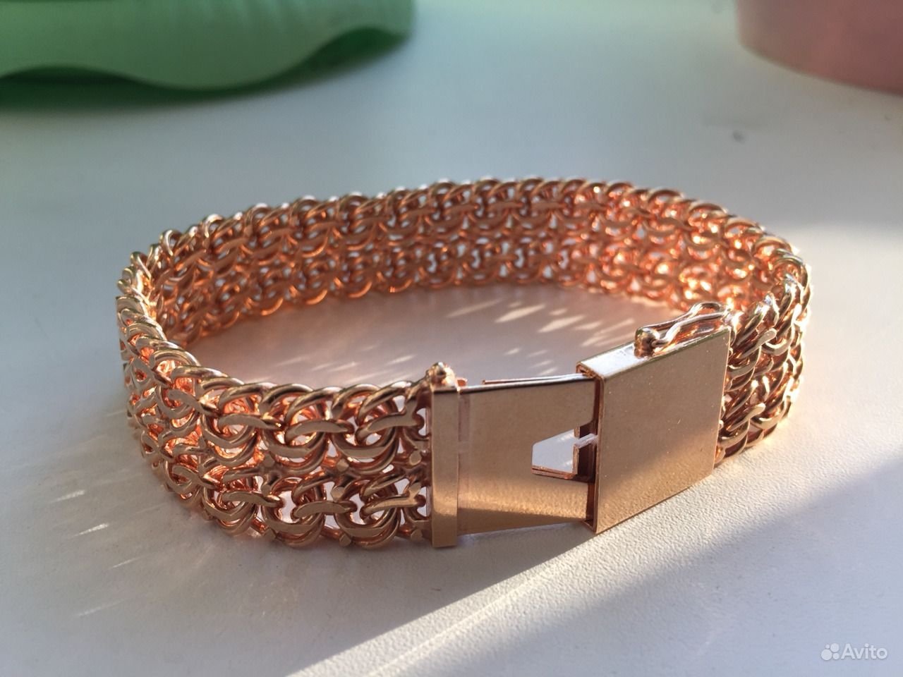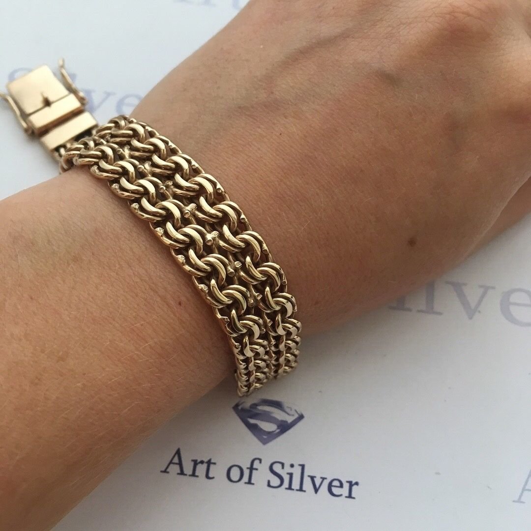 Красцветмет браслет золотой плетение бисмарк двойной НБ 12-073