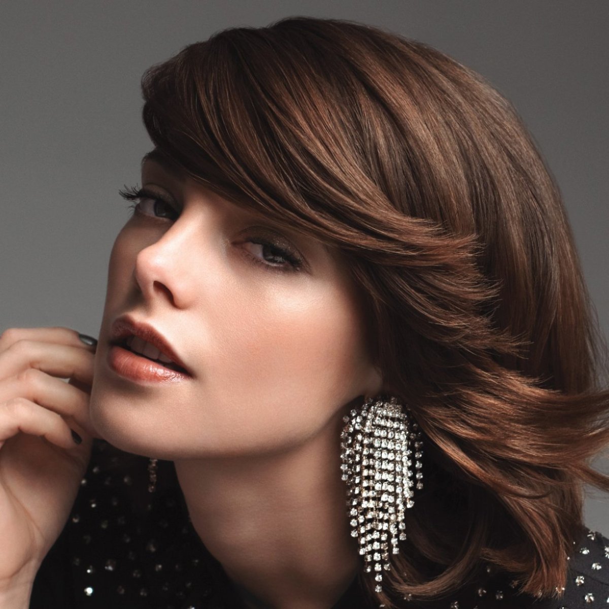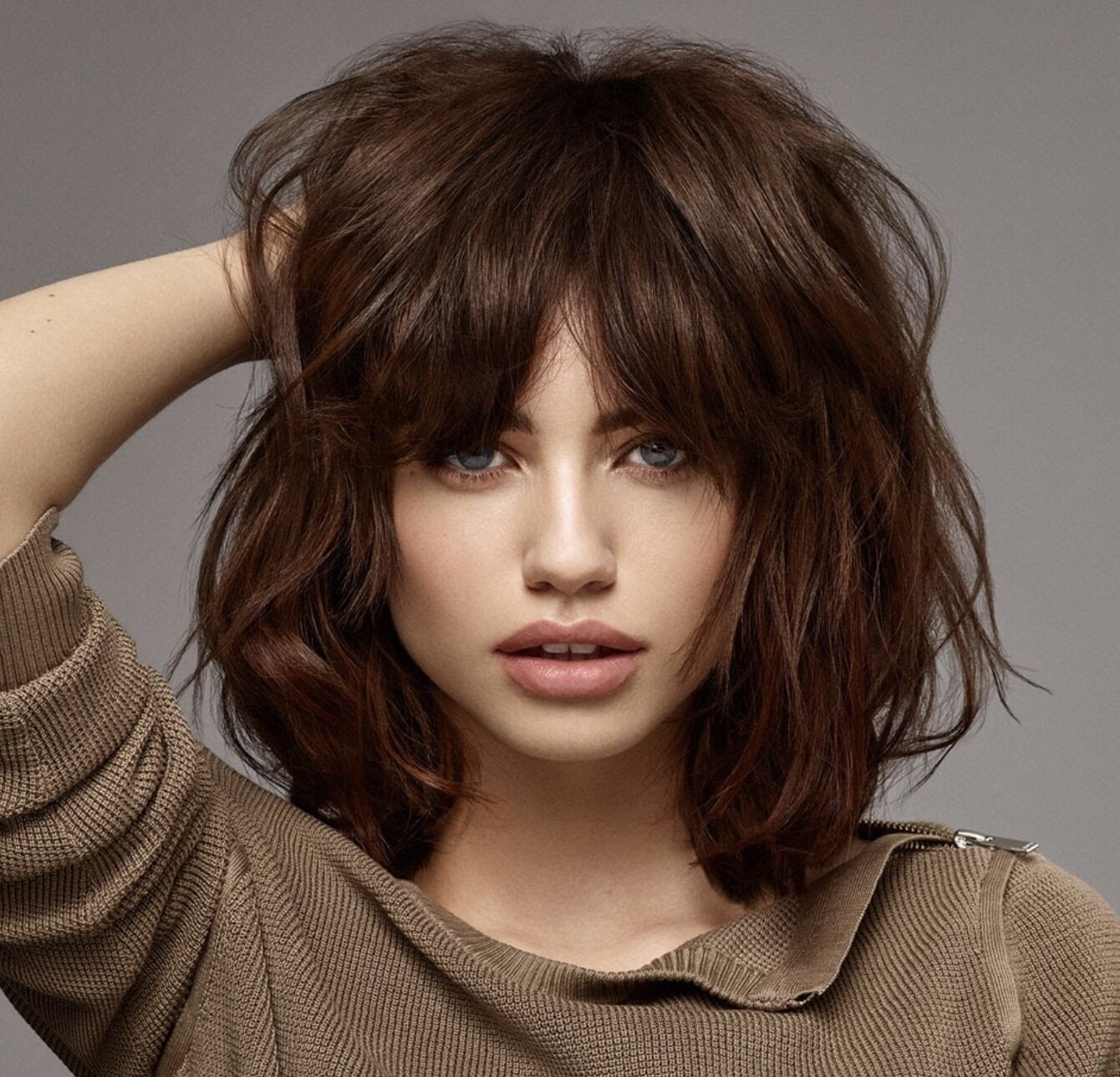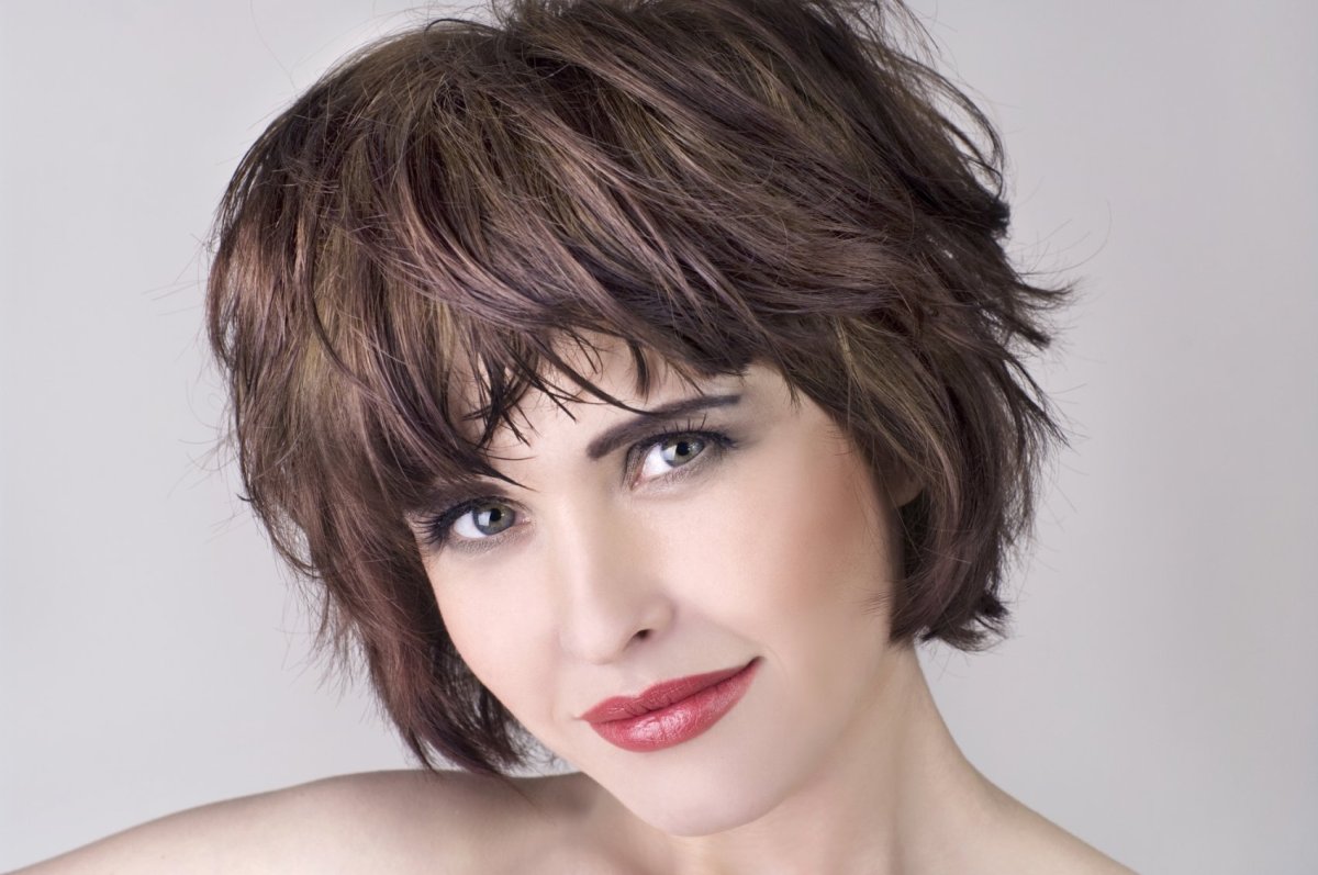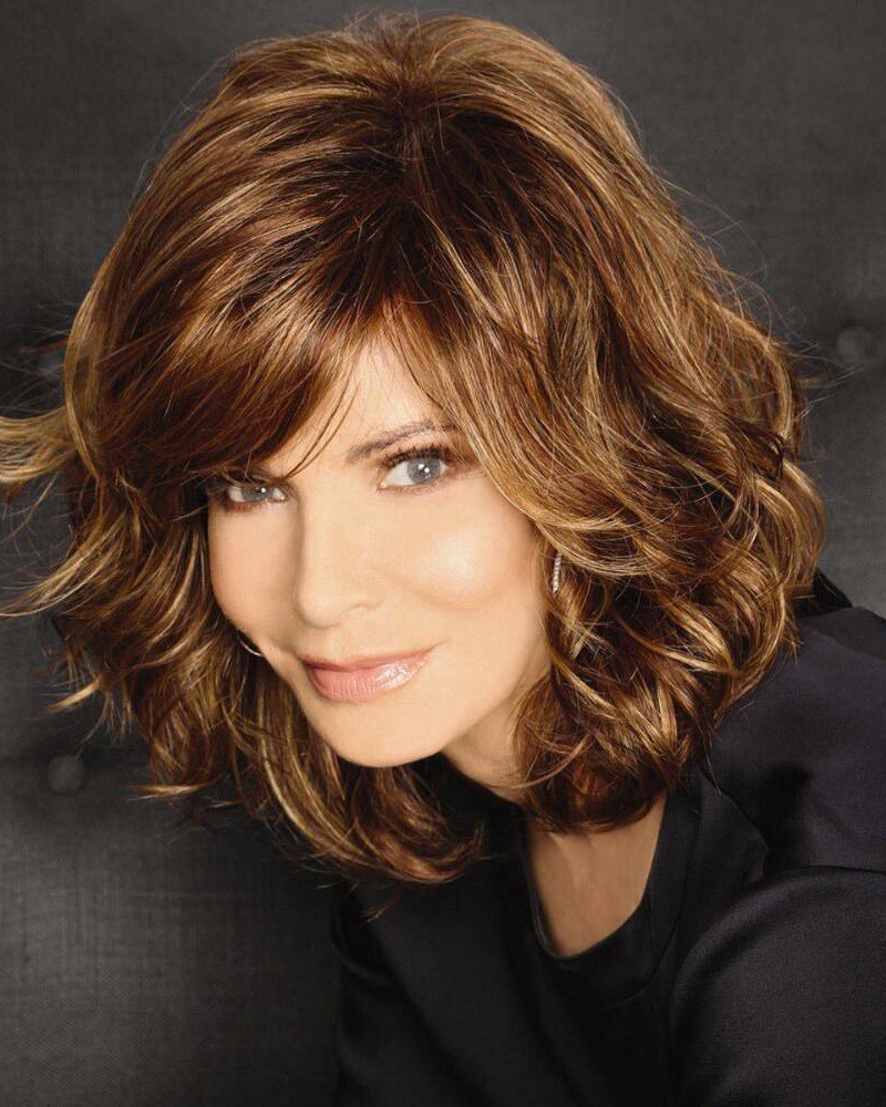 Стрижка Боб Каскад на средние волосы с челкой после 50 лет