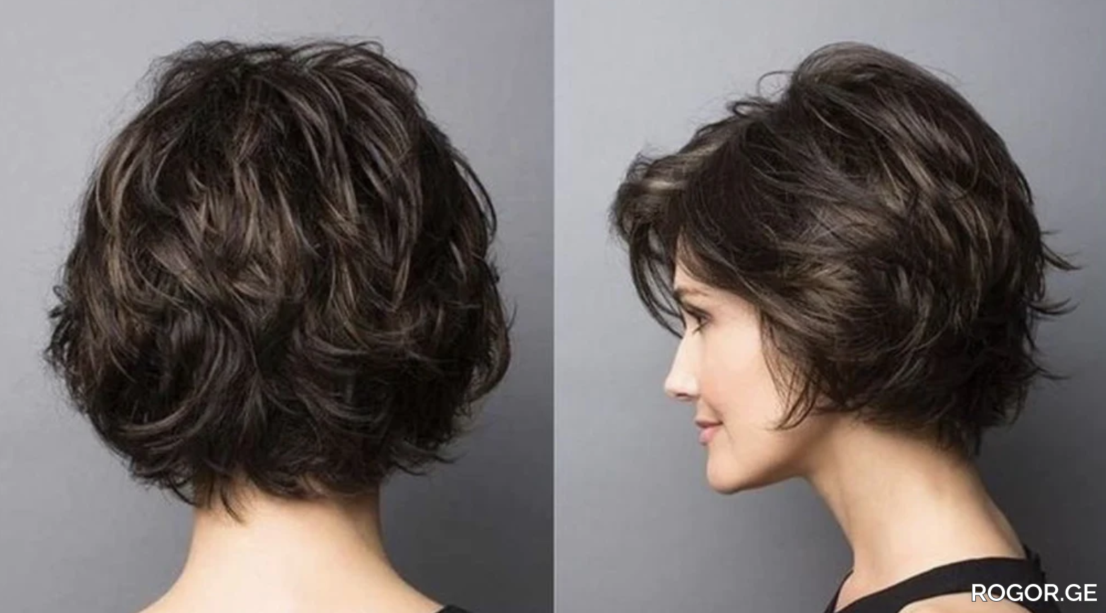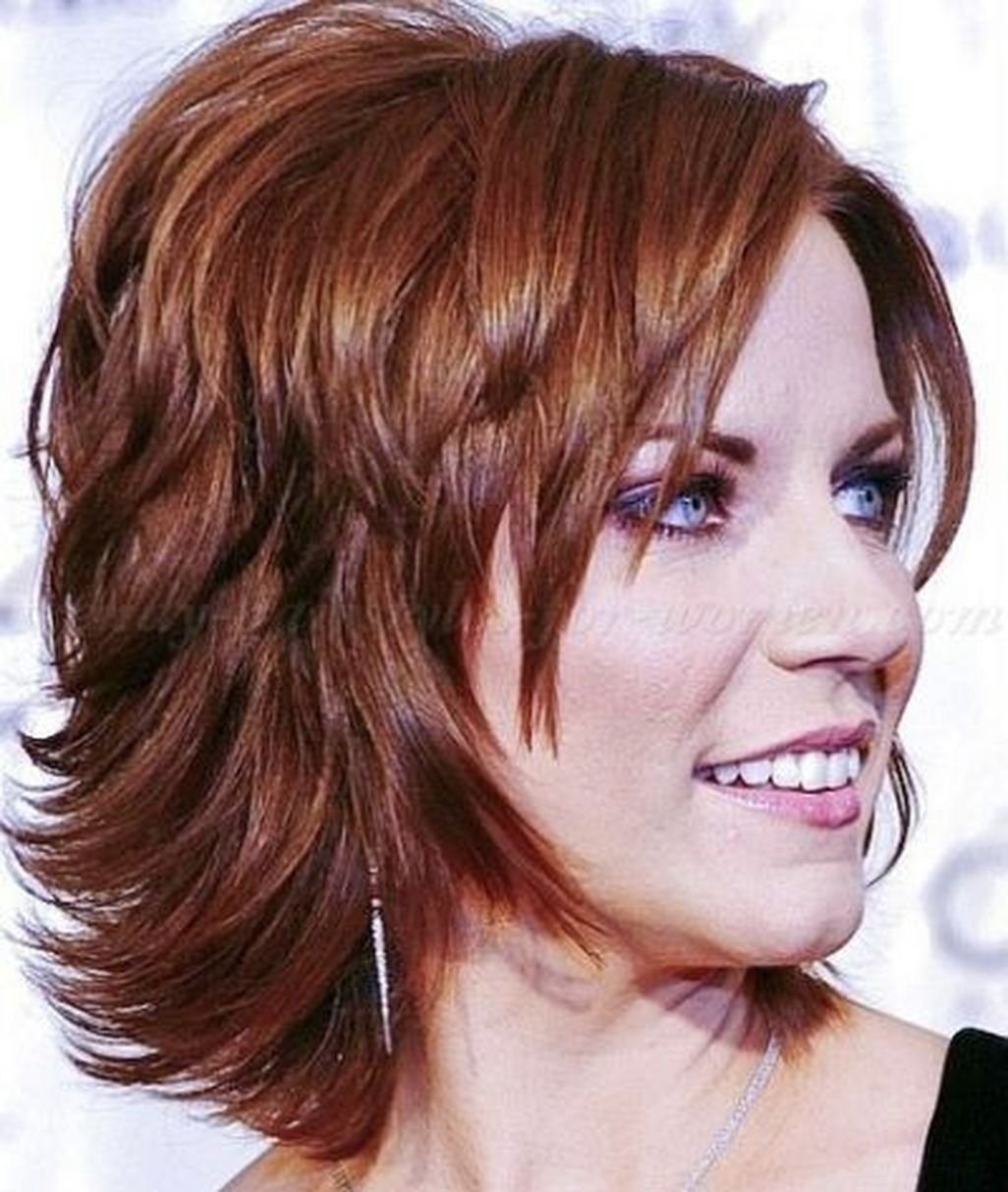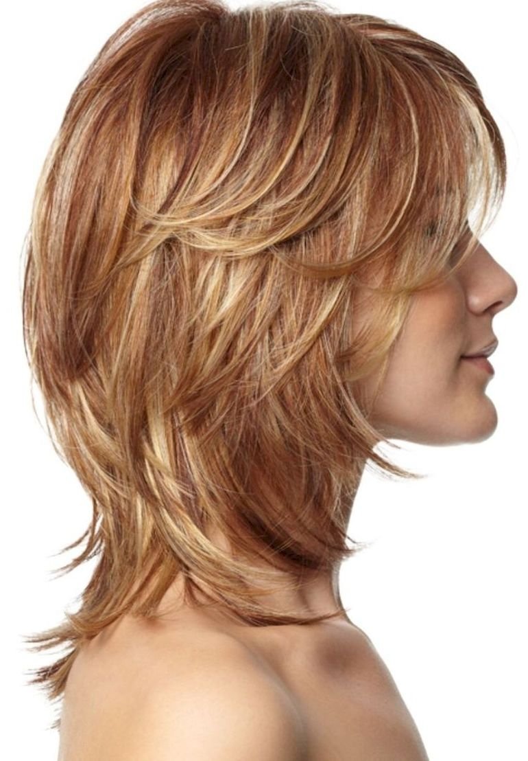 Стрижка Боб Каскад на средние волосы с челкой после 50 лет