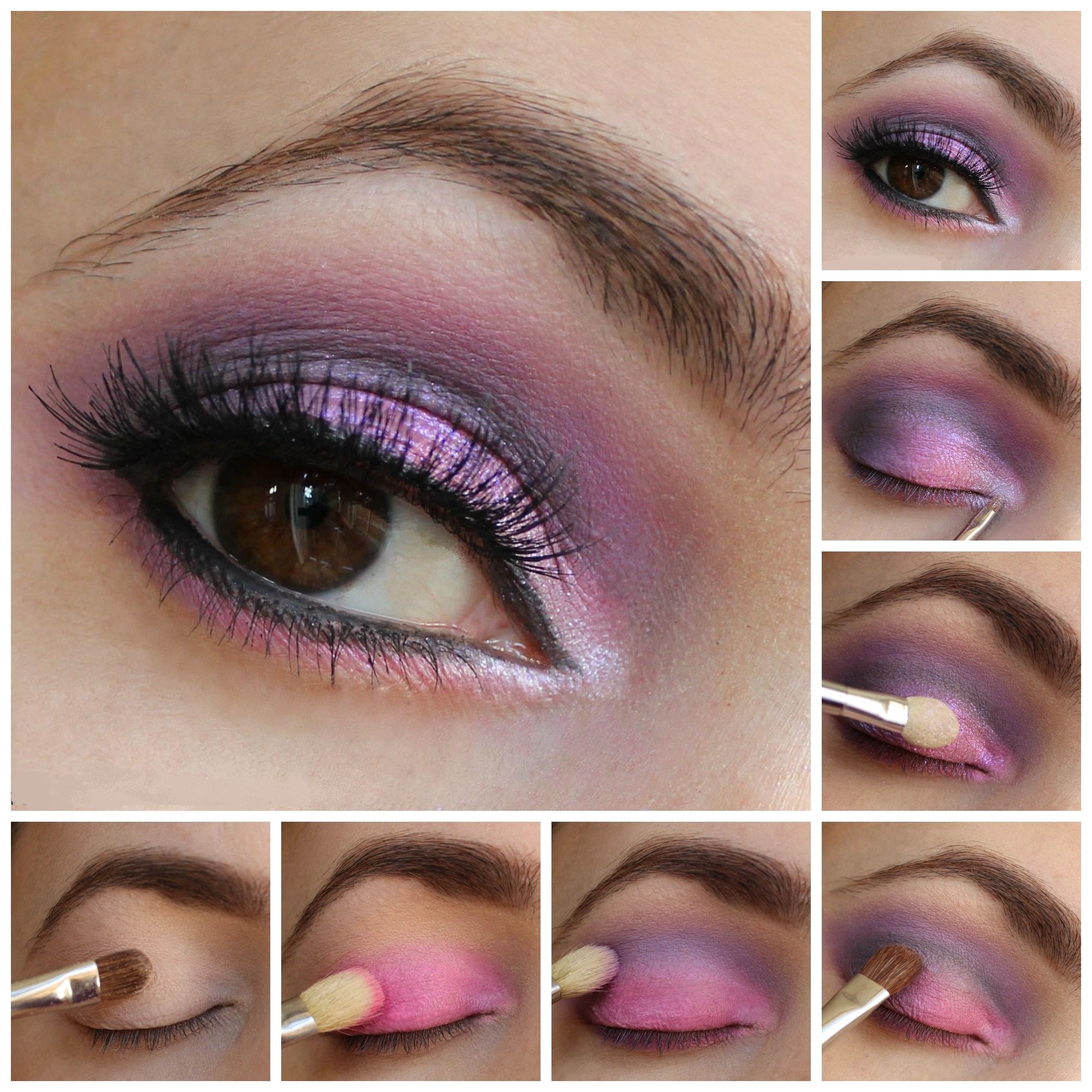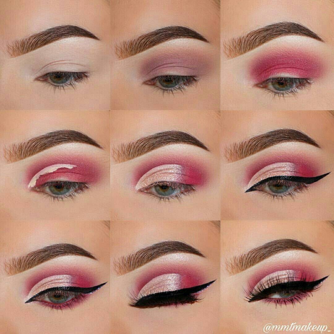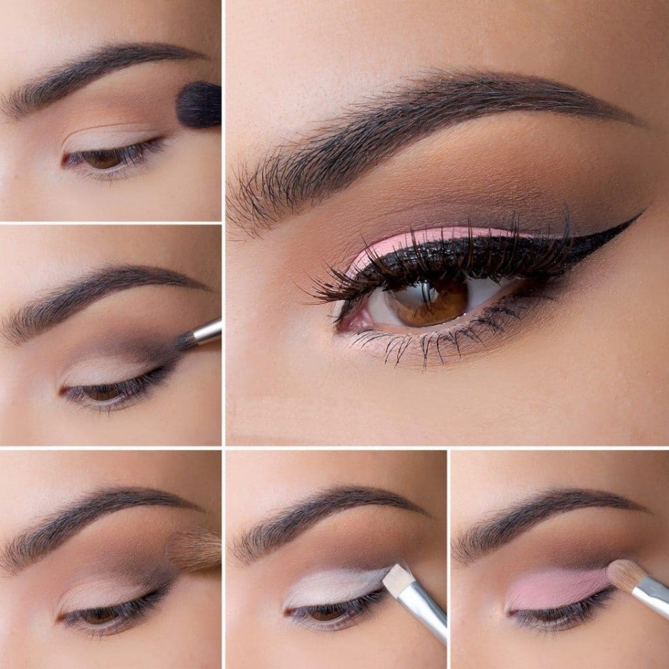 Розовый макияж глаз пошагово