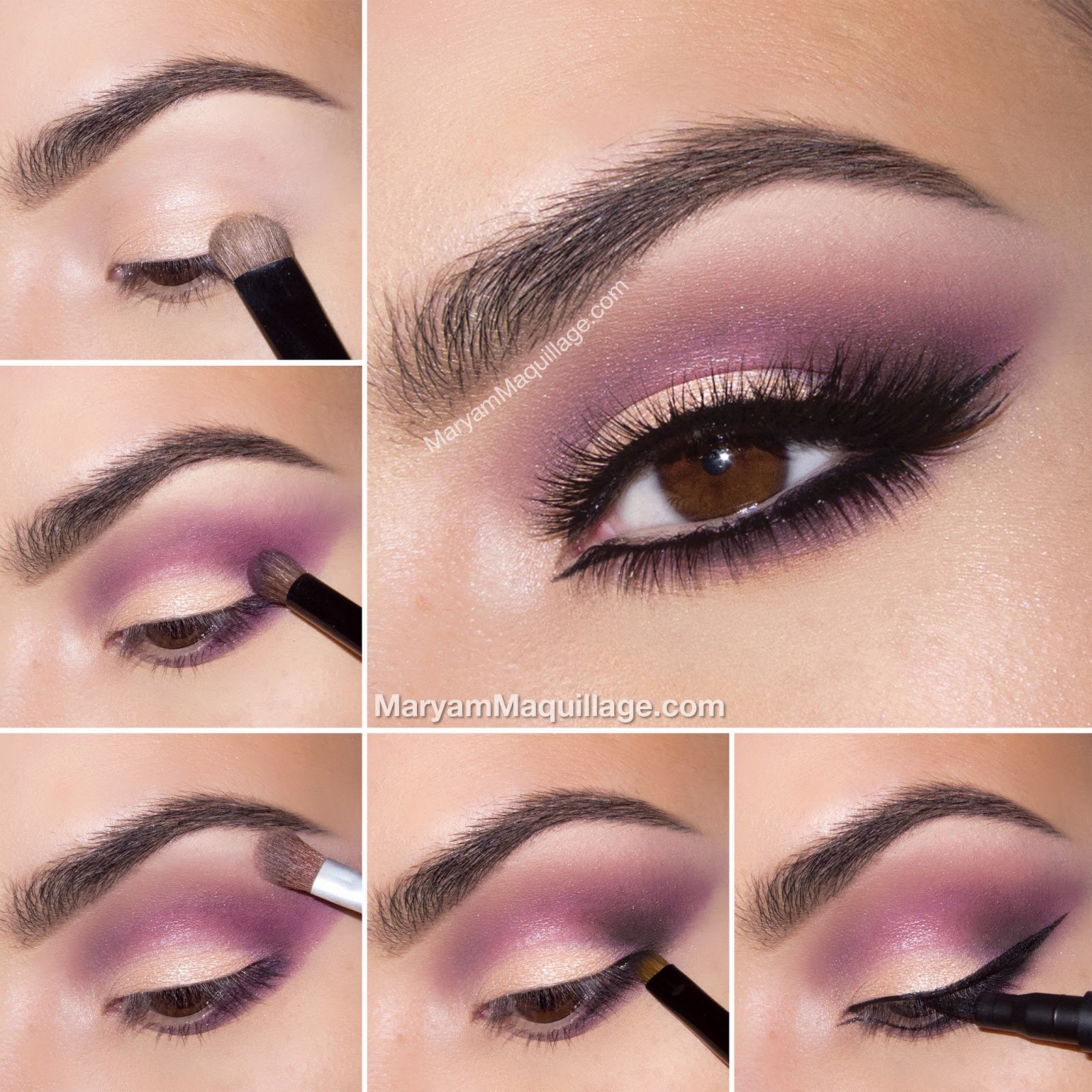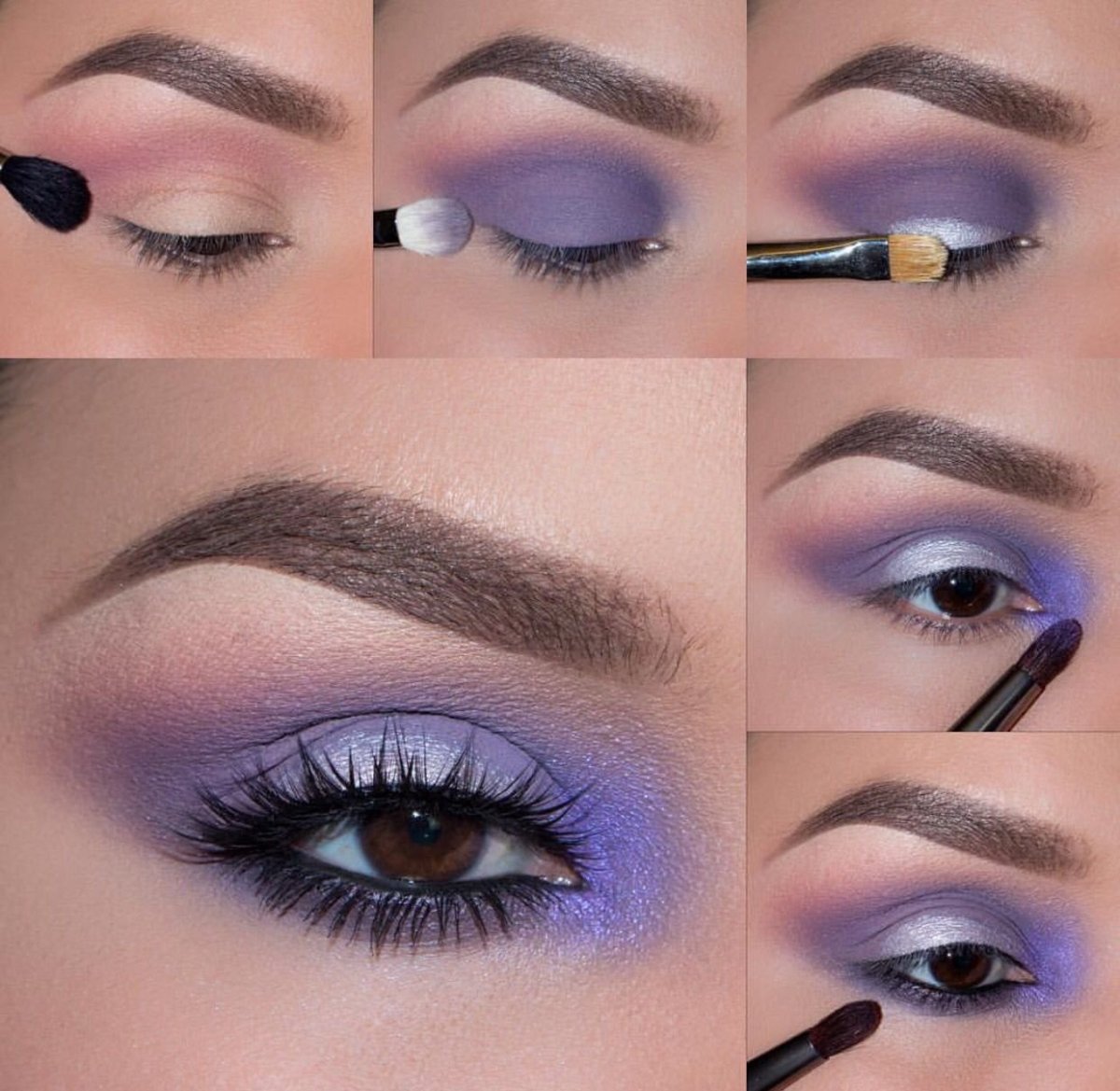 Макияж с фиолетовыми тенями для карих