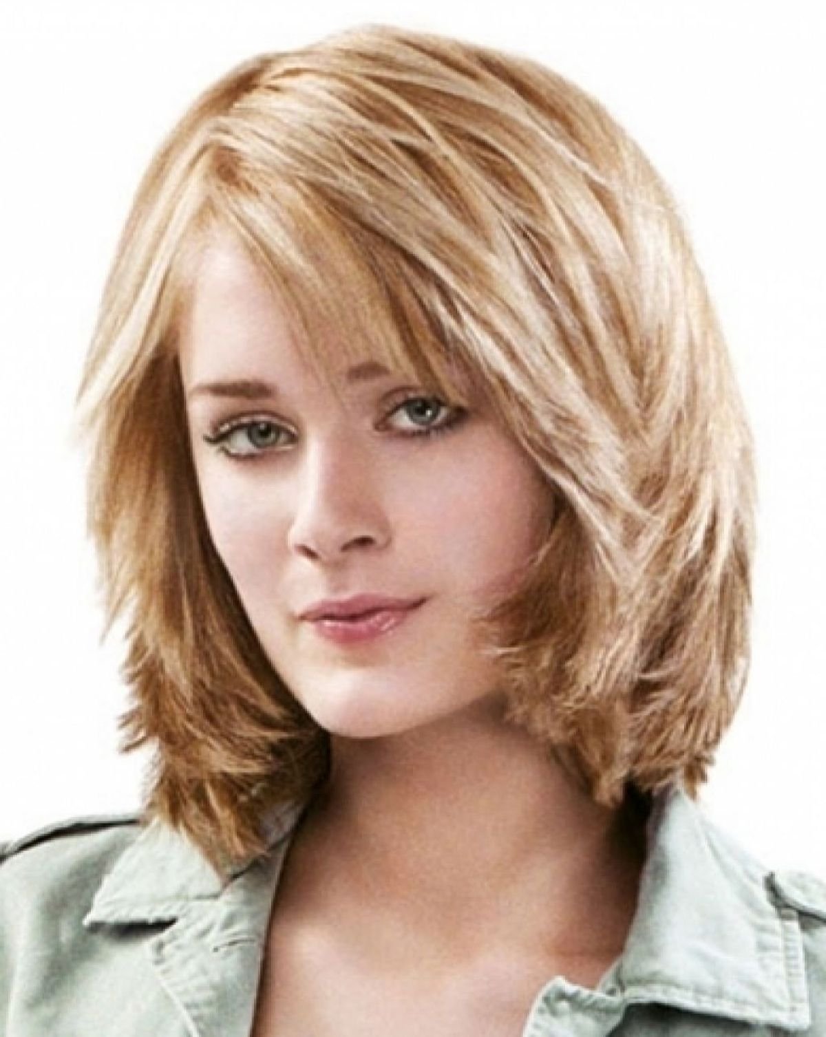 Стрижка каре Каскад на средние волосы с челкой для круглого лица