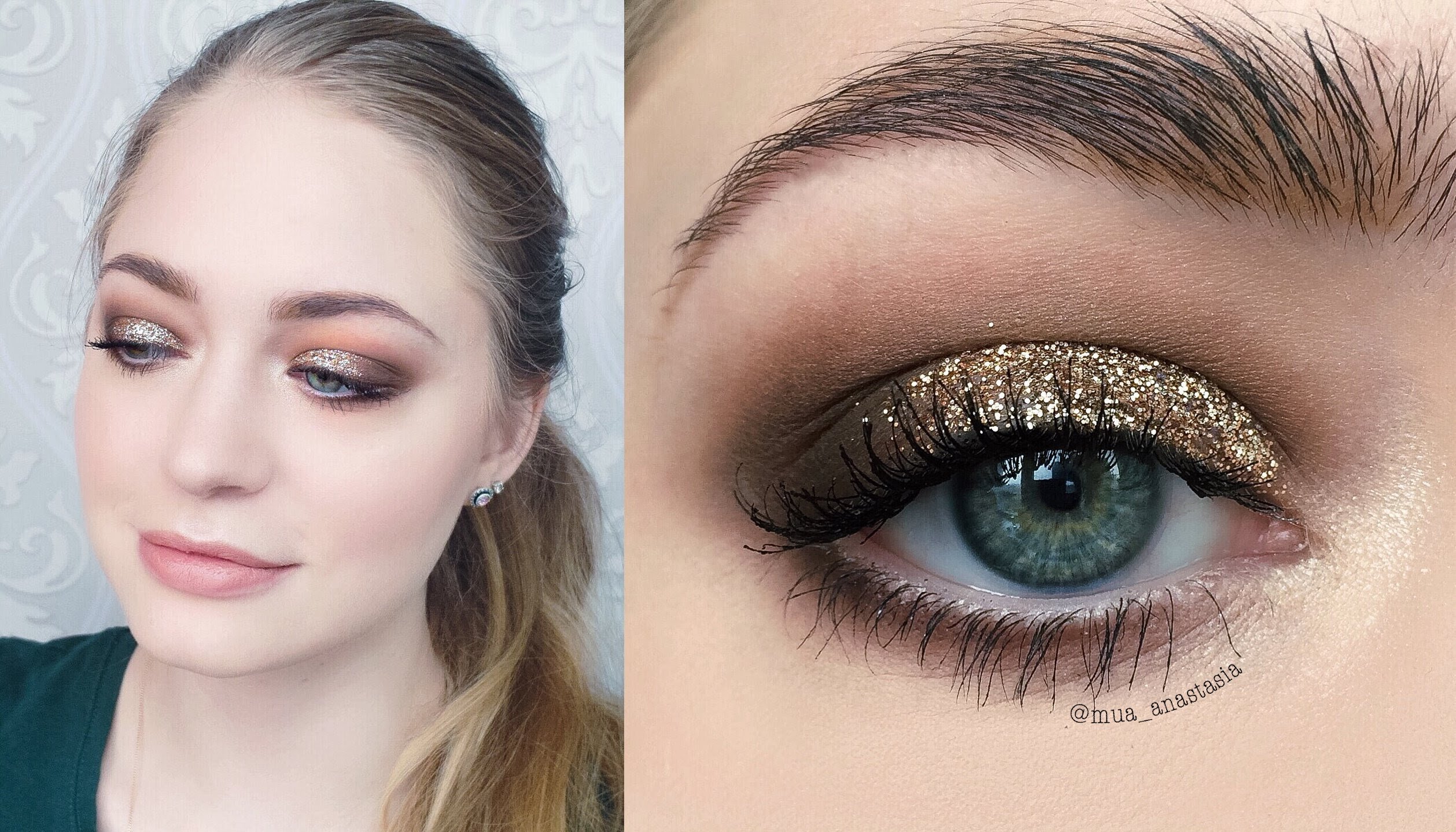 Макияж для нависшего века с блестками