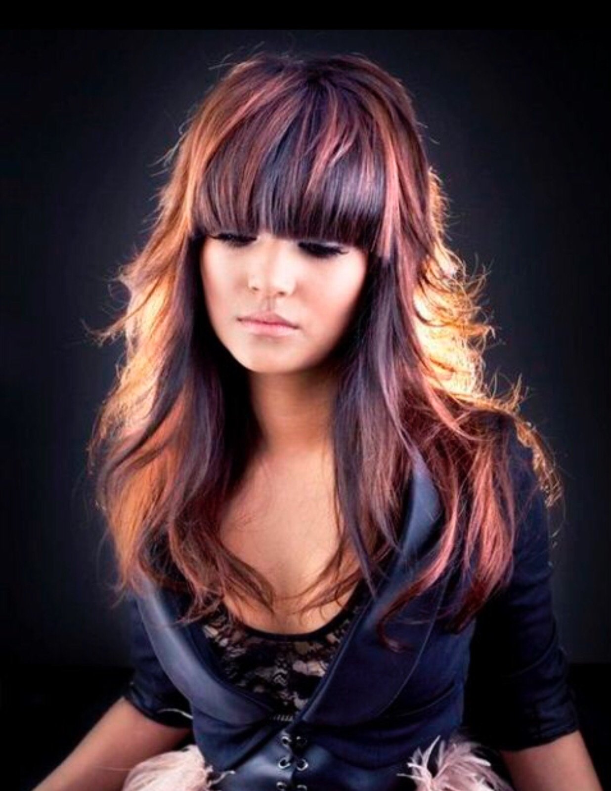 Стрижка Каскад Гаврош на средние волосы с челкой