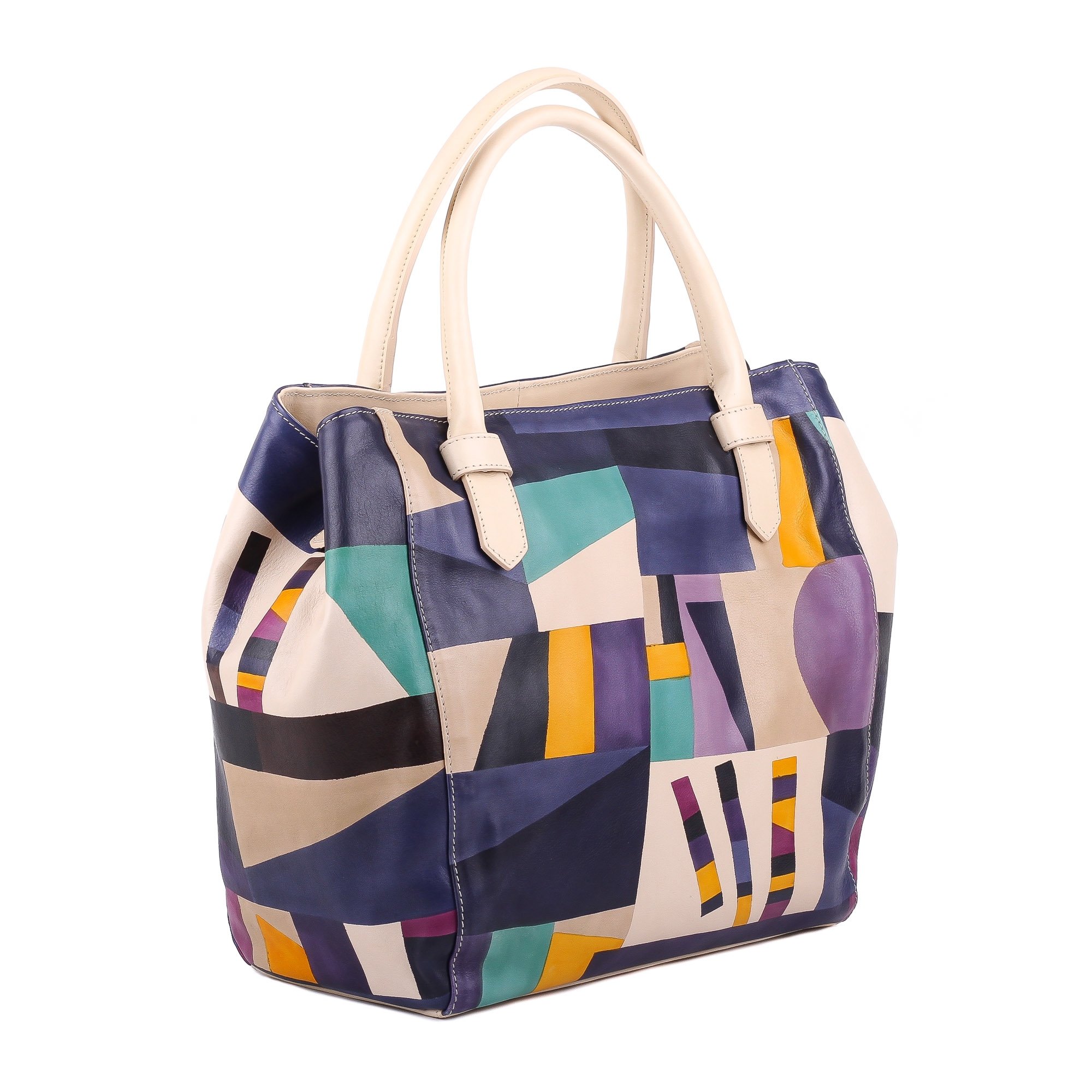 Multicolored Squares Leather Handbag