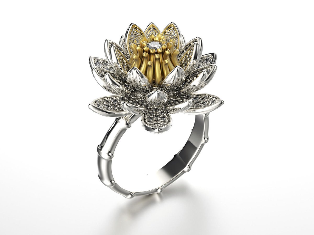 Кольцо с лотосом c ,hbkbfynbrfvb