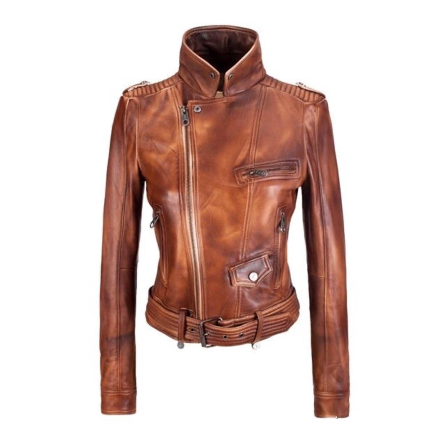 Байкерская кожаная куртка женская