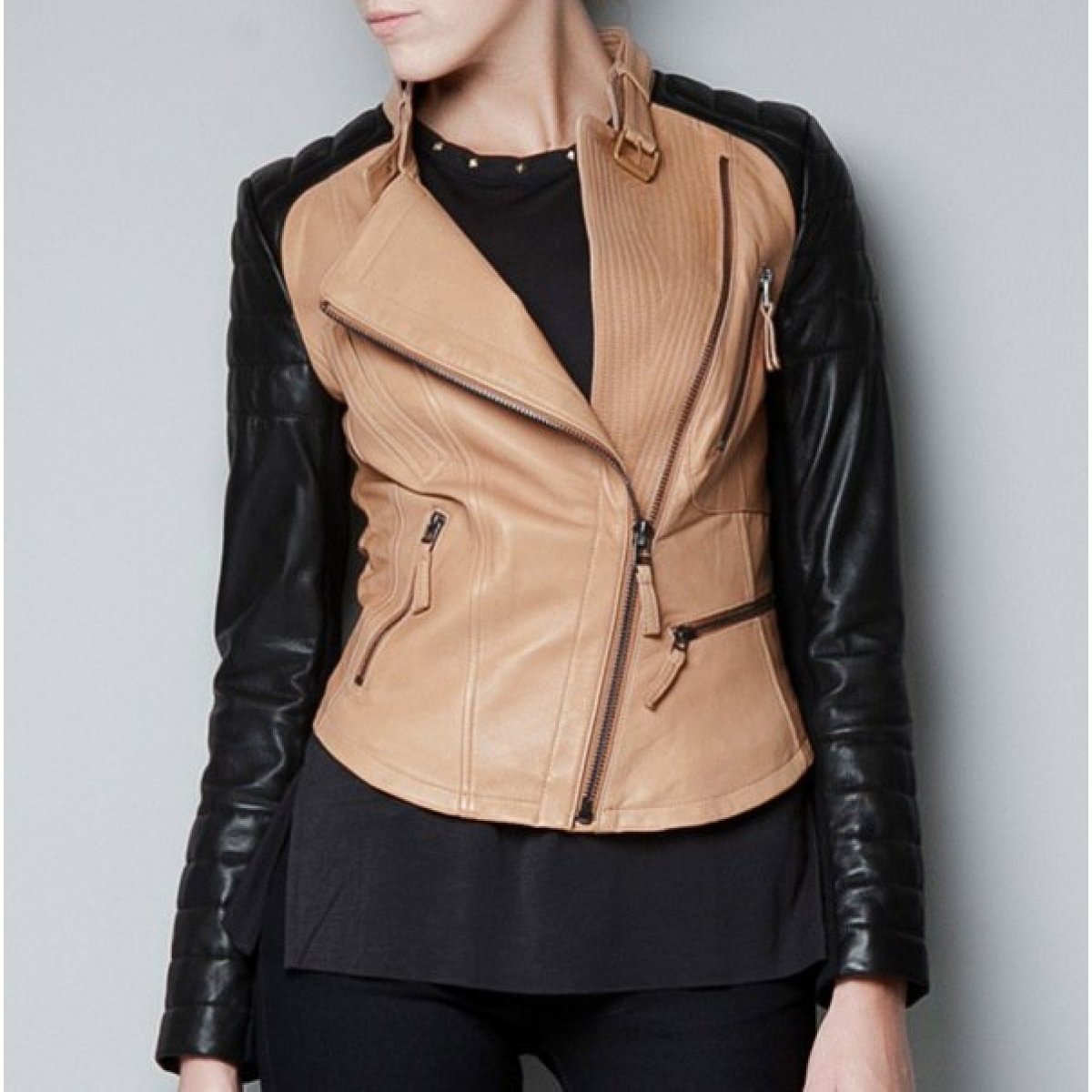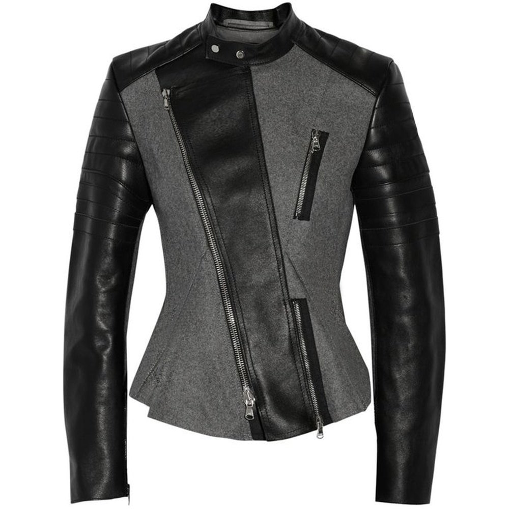 Комбинированная кожаная куртка женская