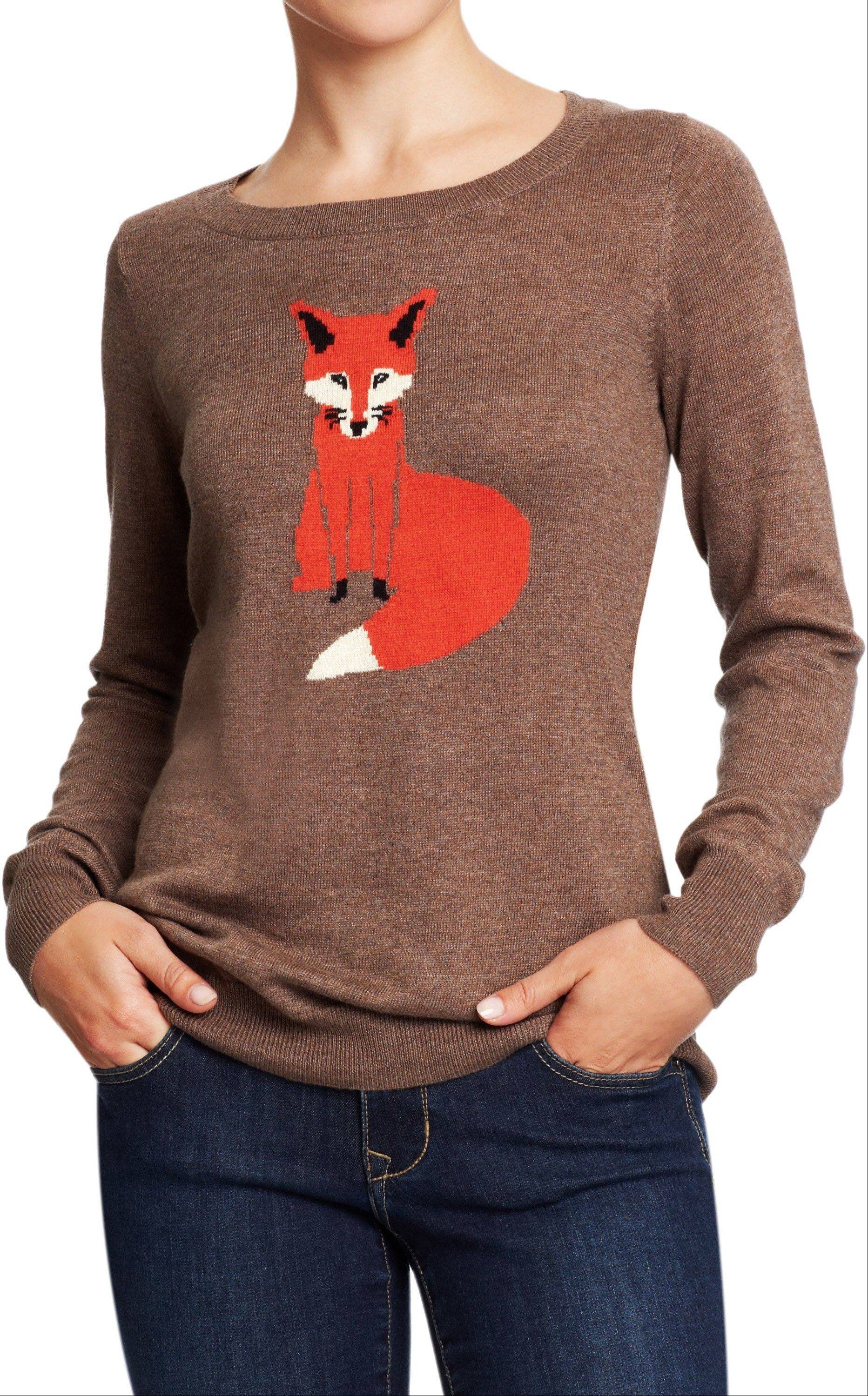 Аппликация на свитере лиса