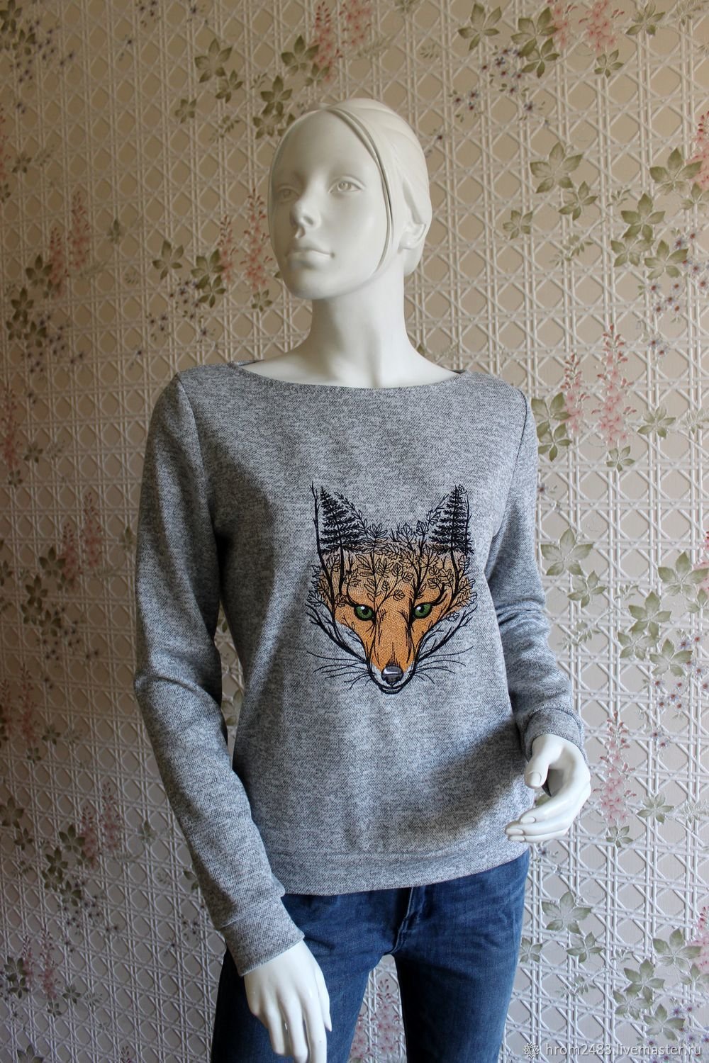 Свитер с вышитой лисой