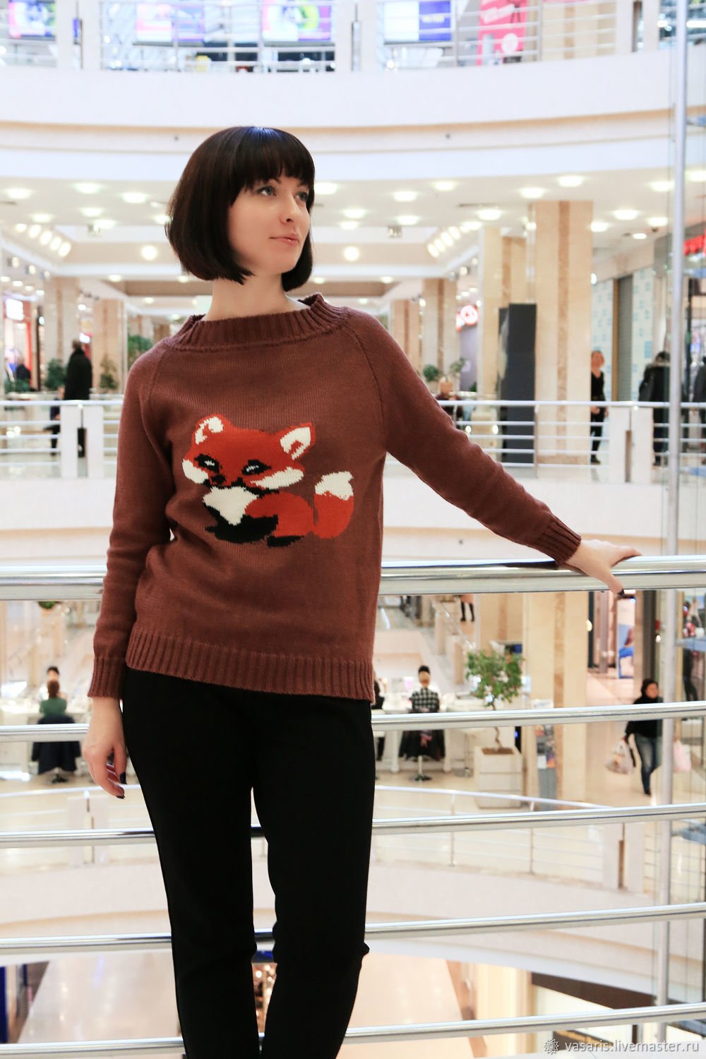 Свитер вязаный с лисой