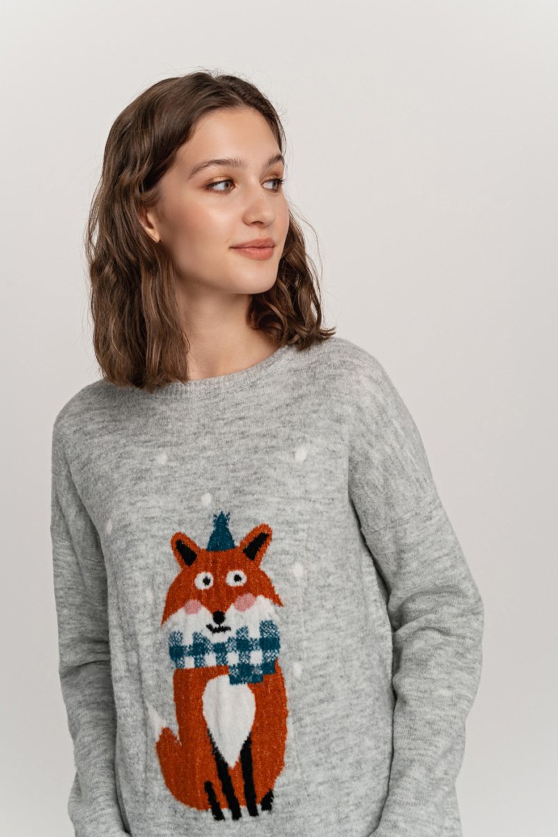 Свитер с лисой женский