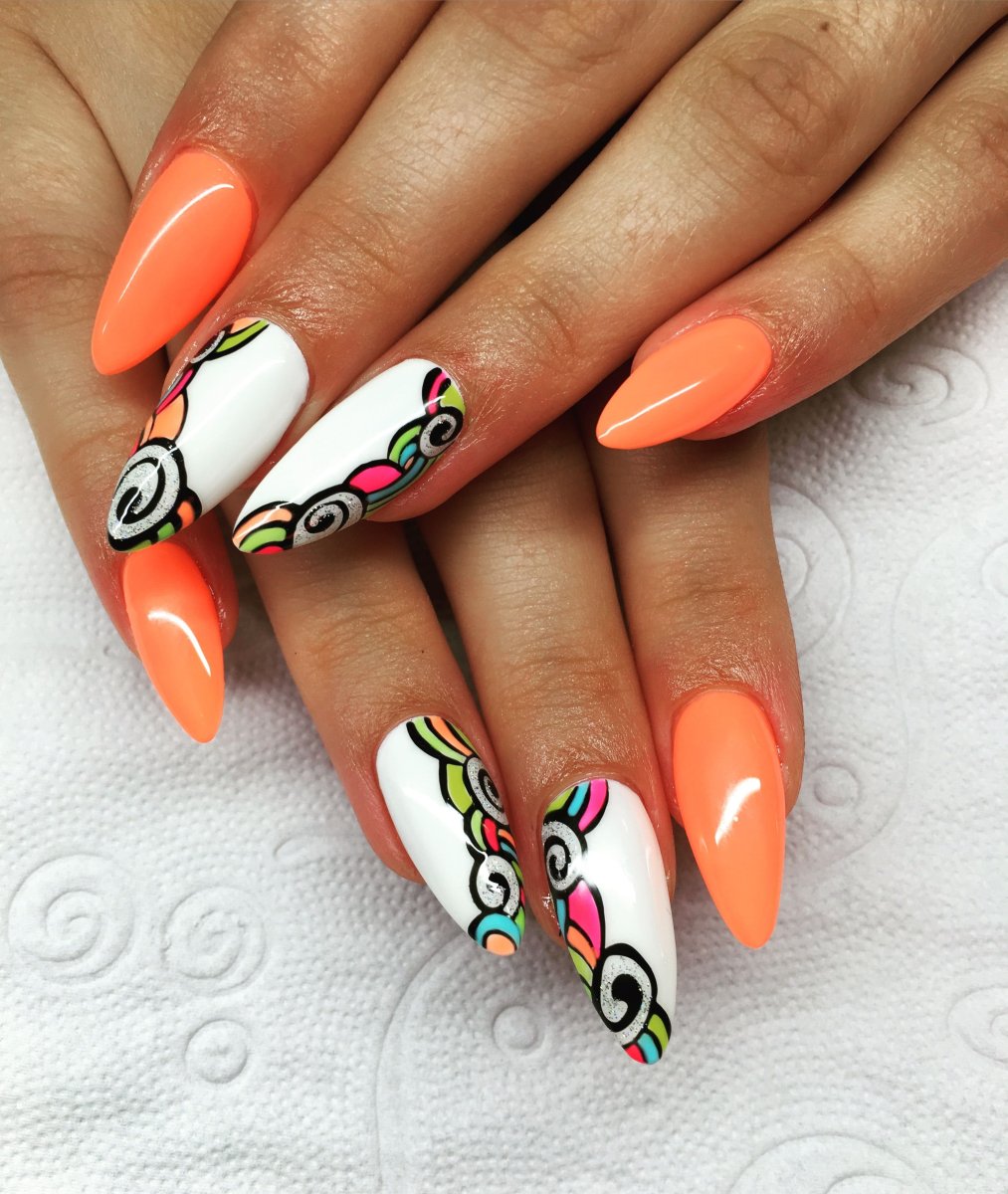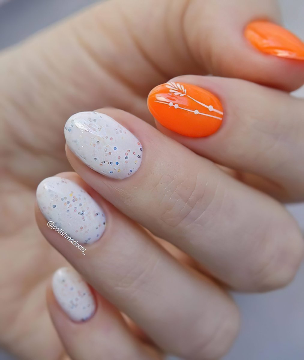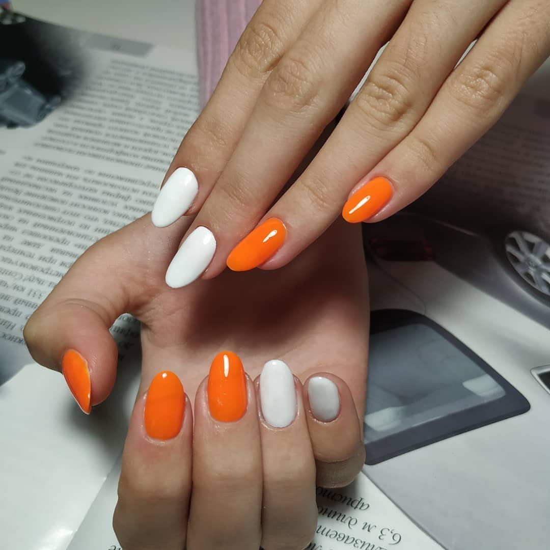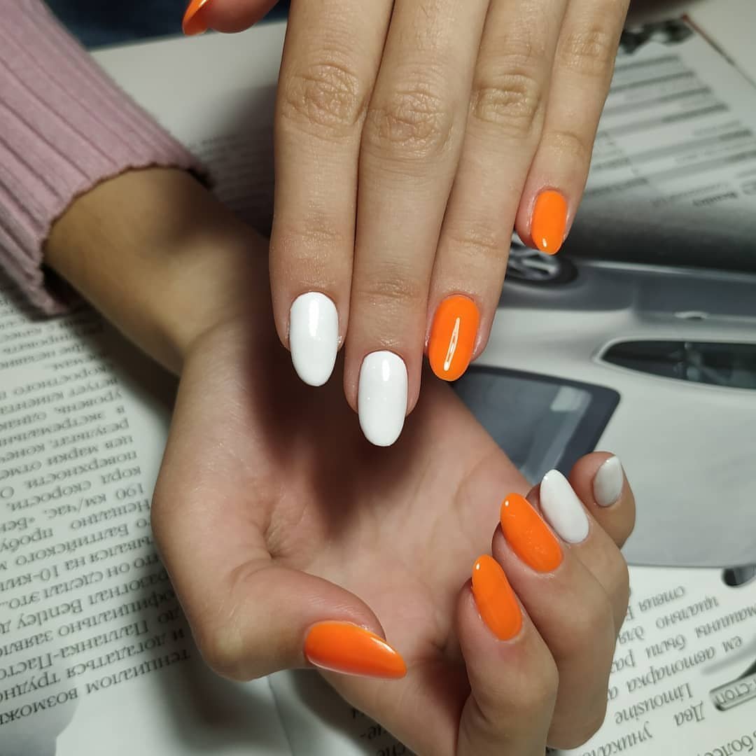 Оранжевый маникюр с белым