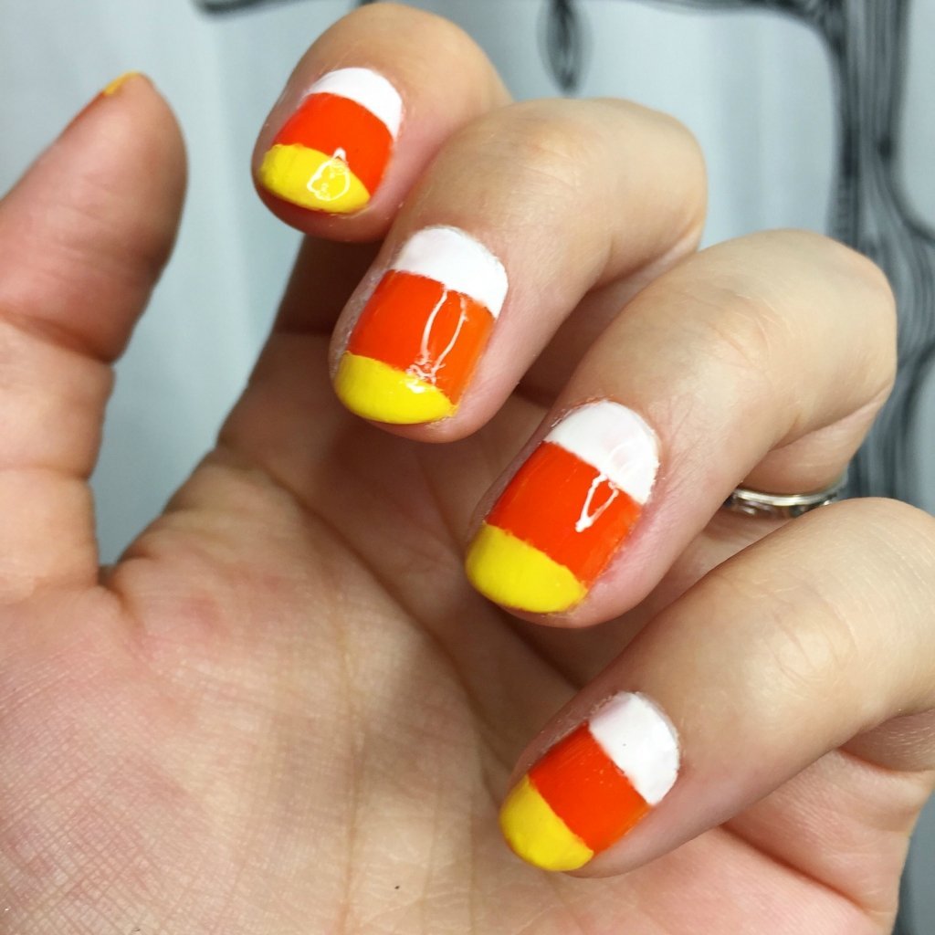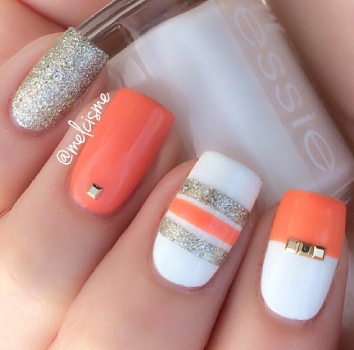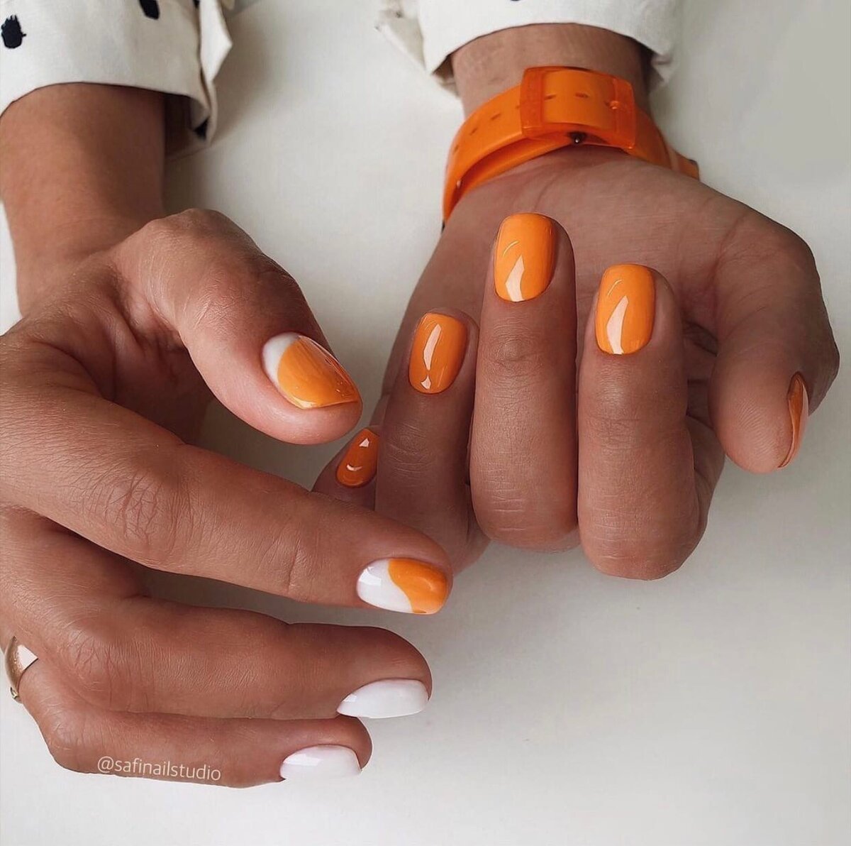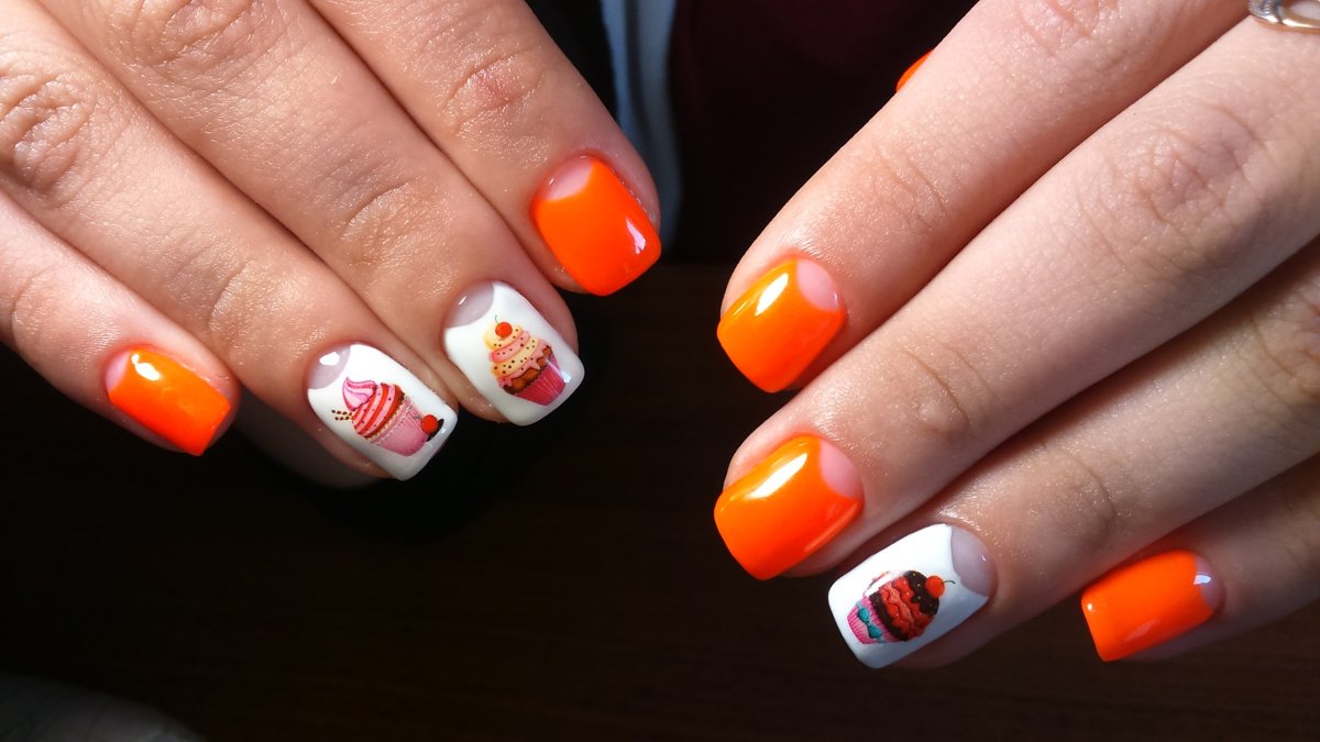 Оранжевый маникюр с белым