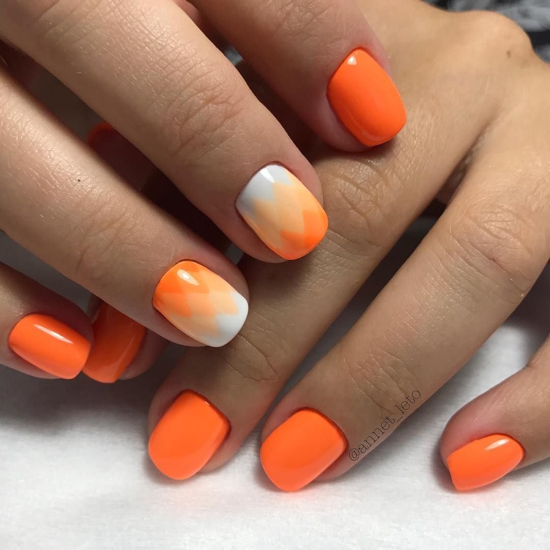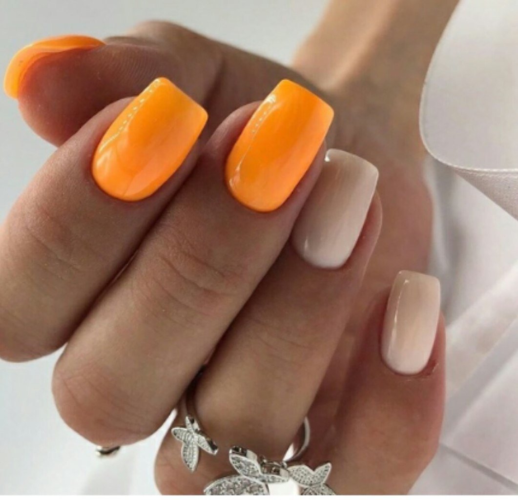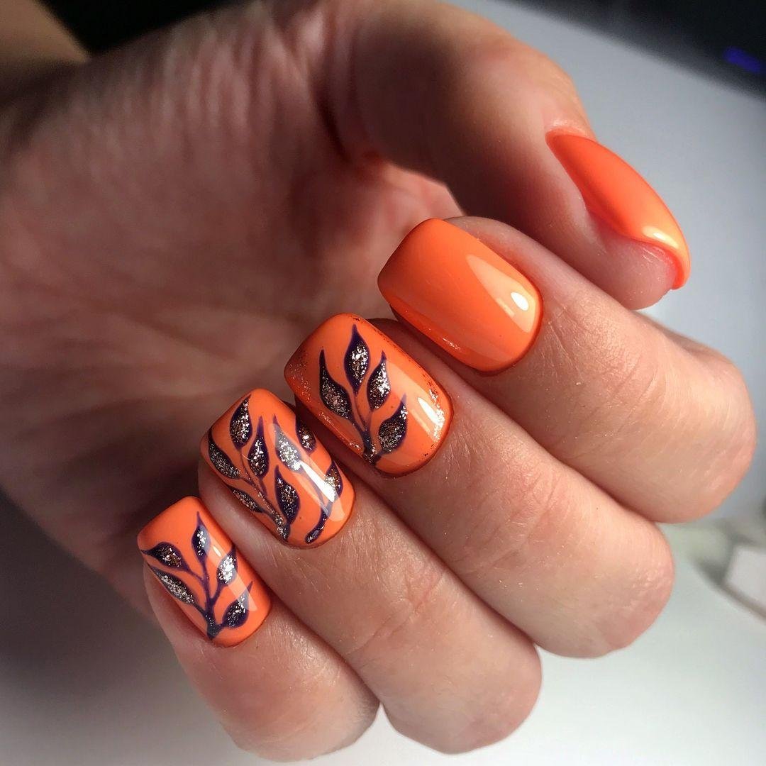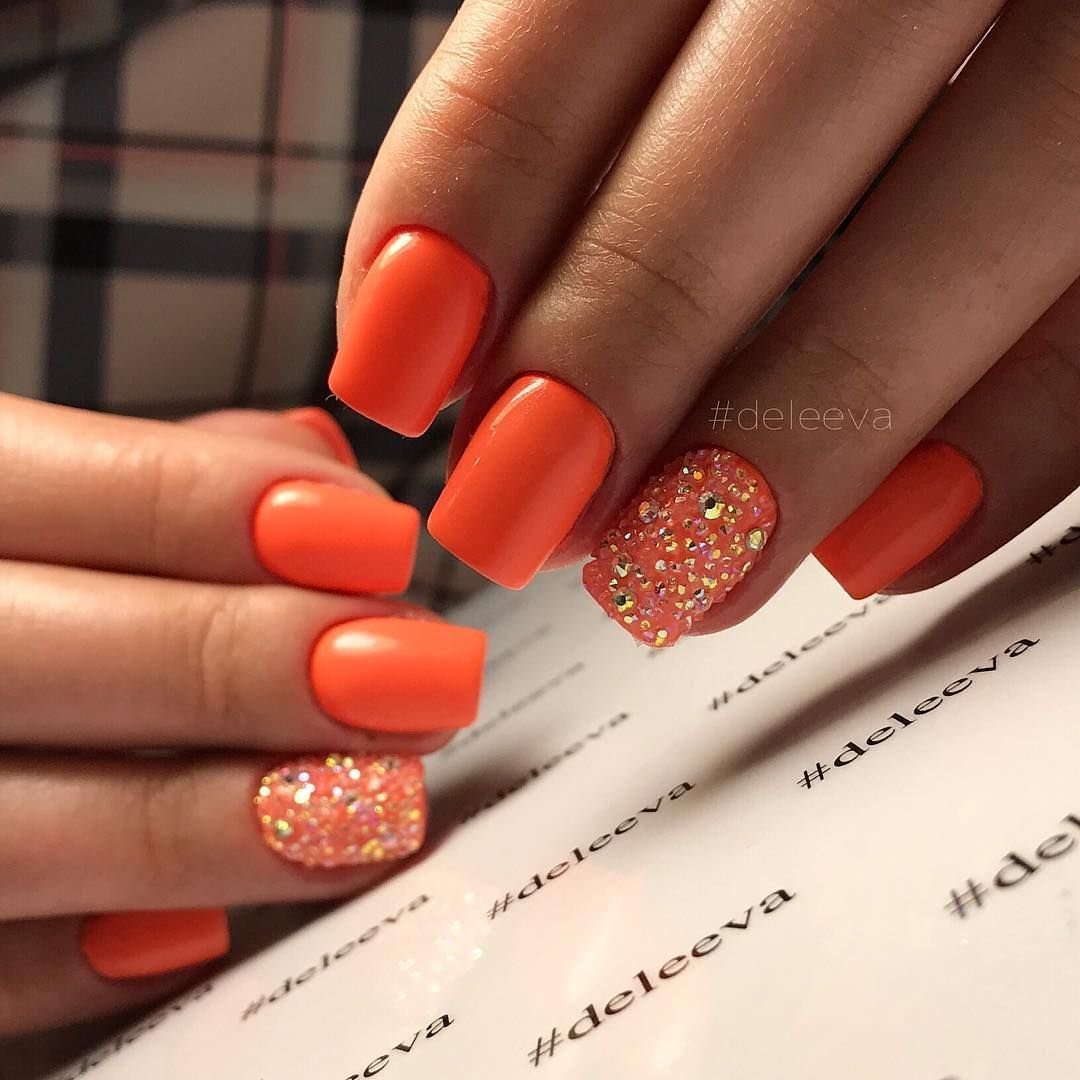 Маникюр с оранжевым цветом