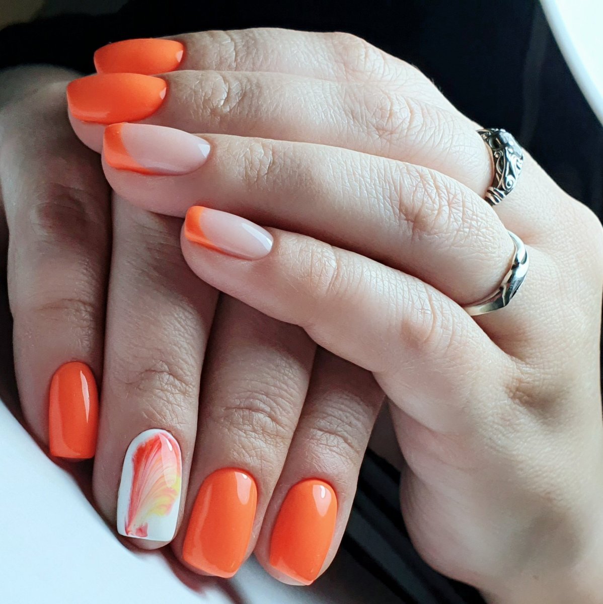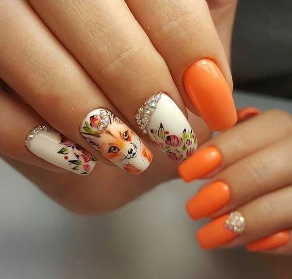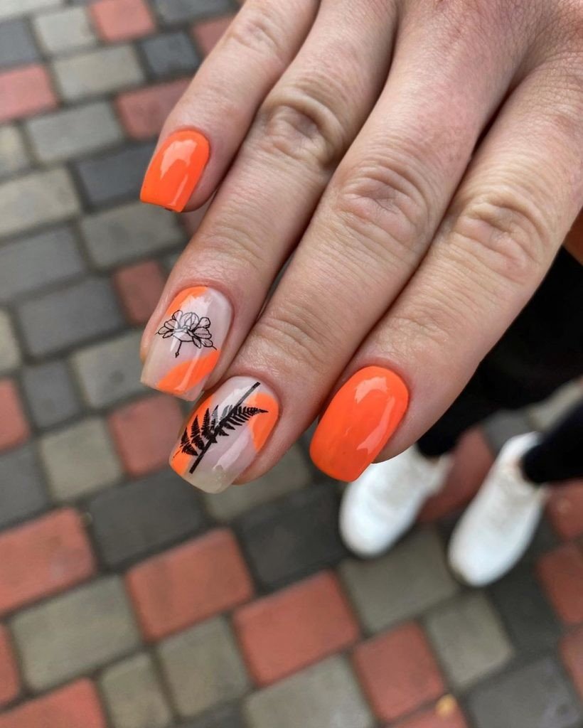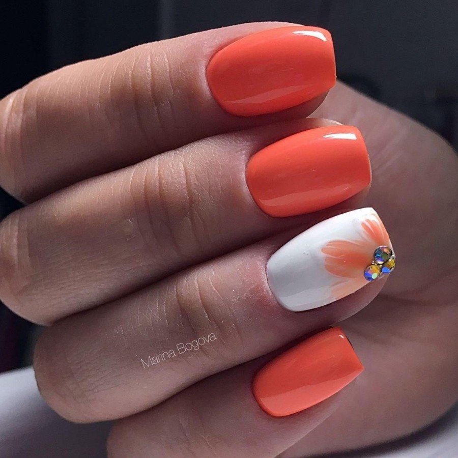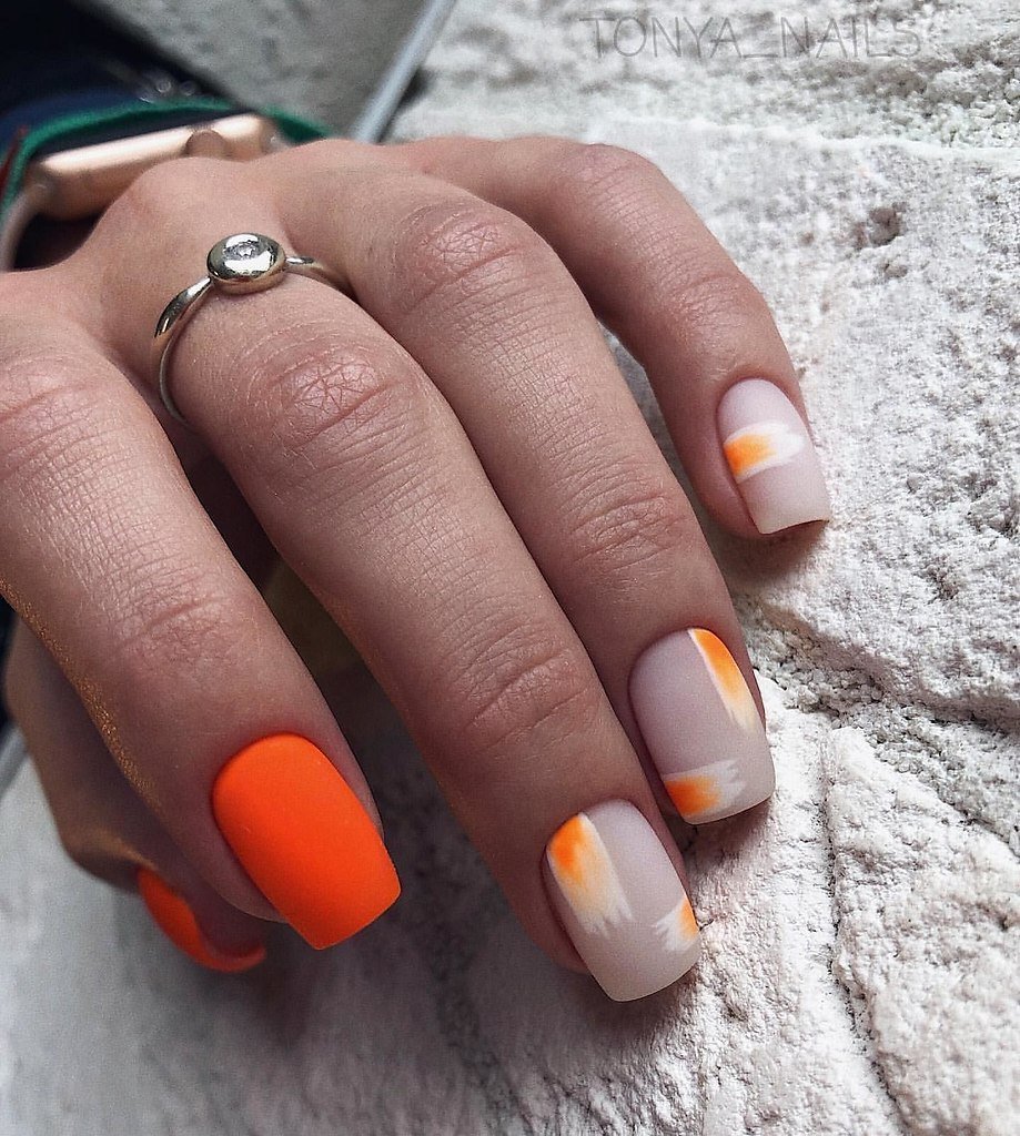 Маникюр с оранжевым цветом