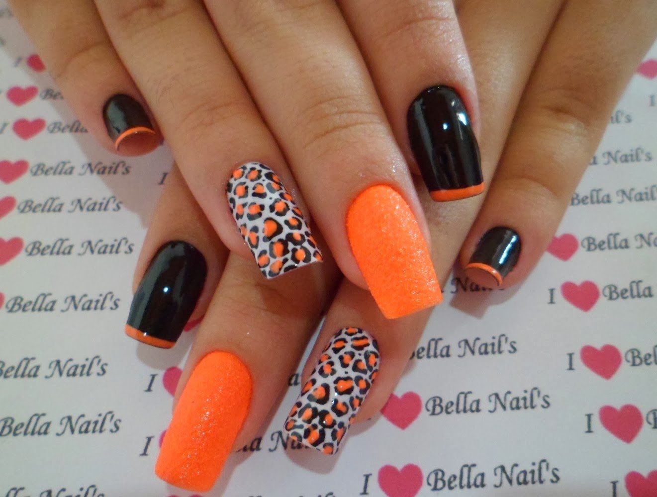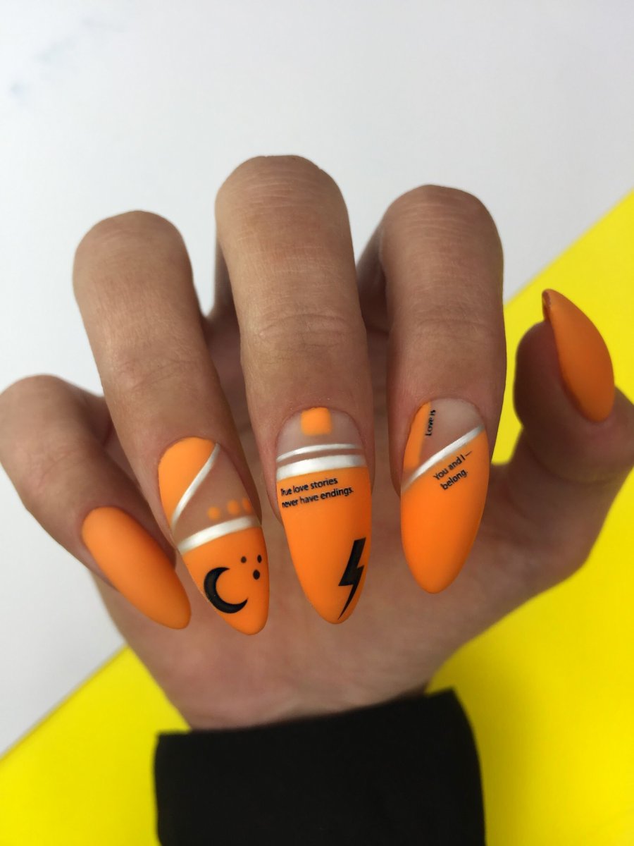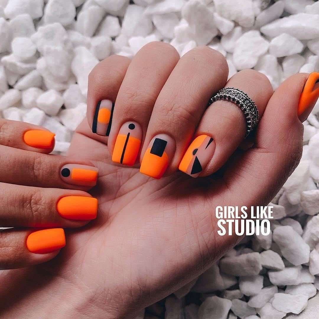Маникюр оранжевый с черным