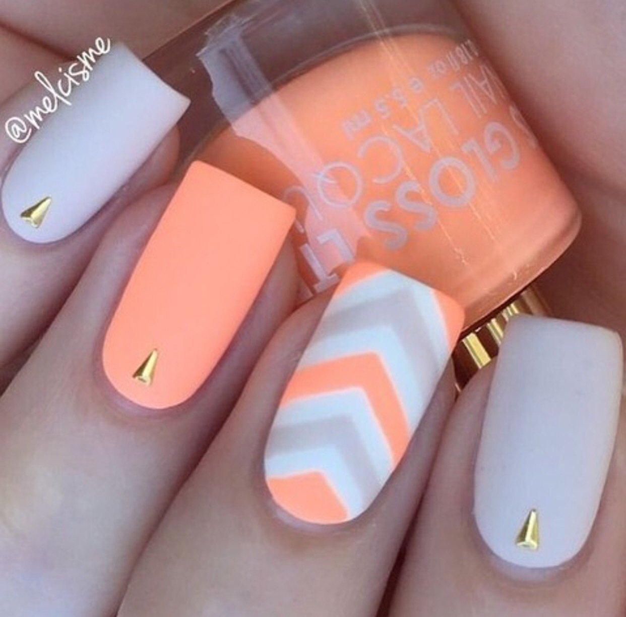 Ногти оранжевые с белым