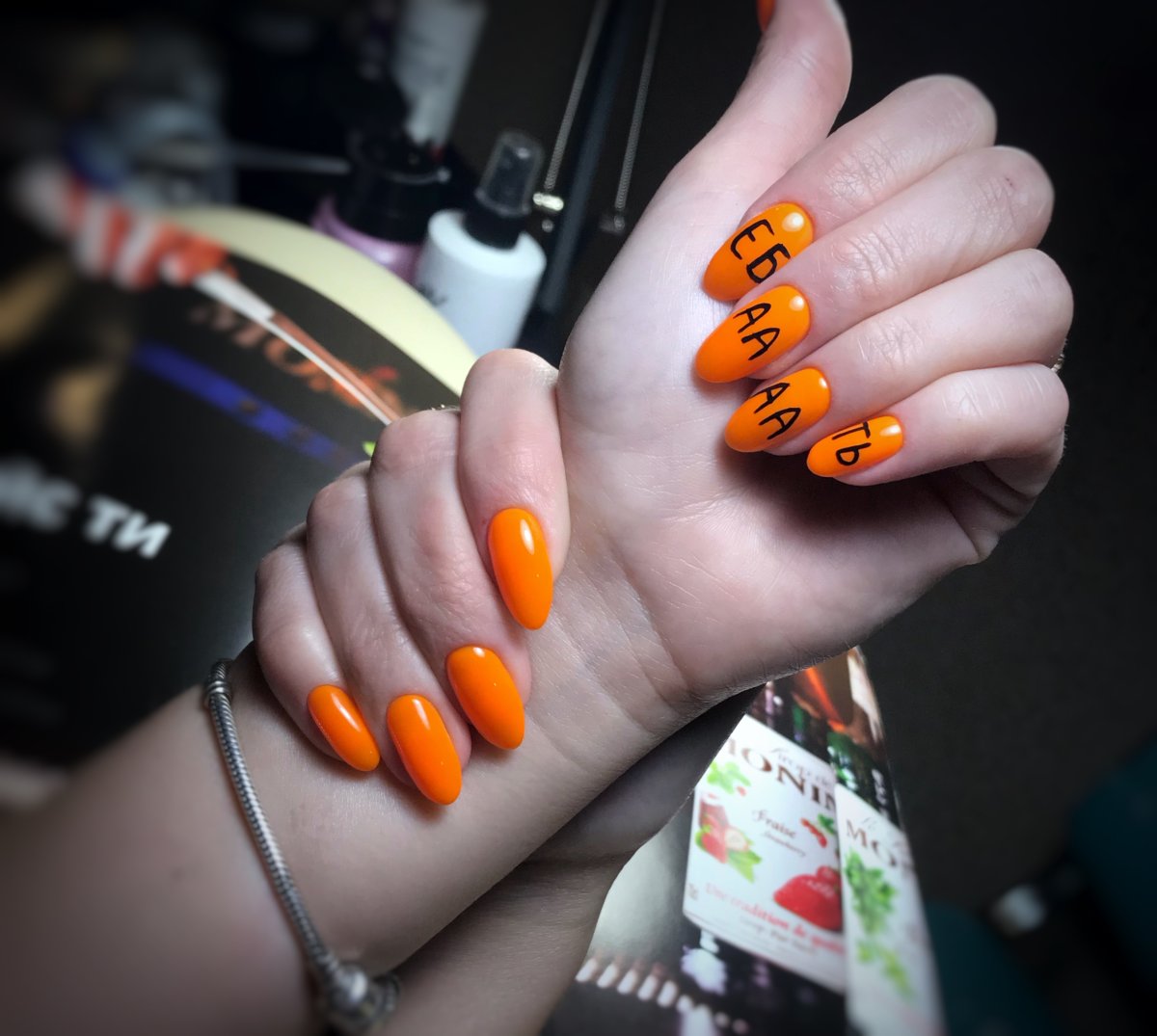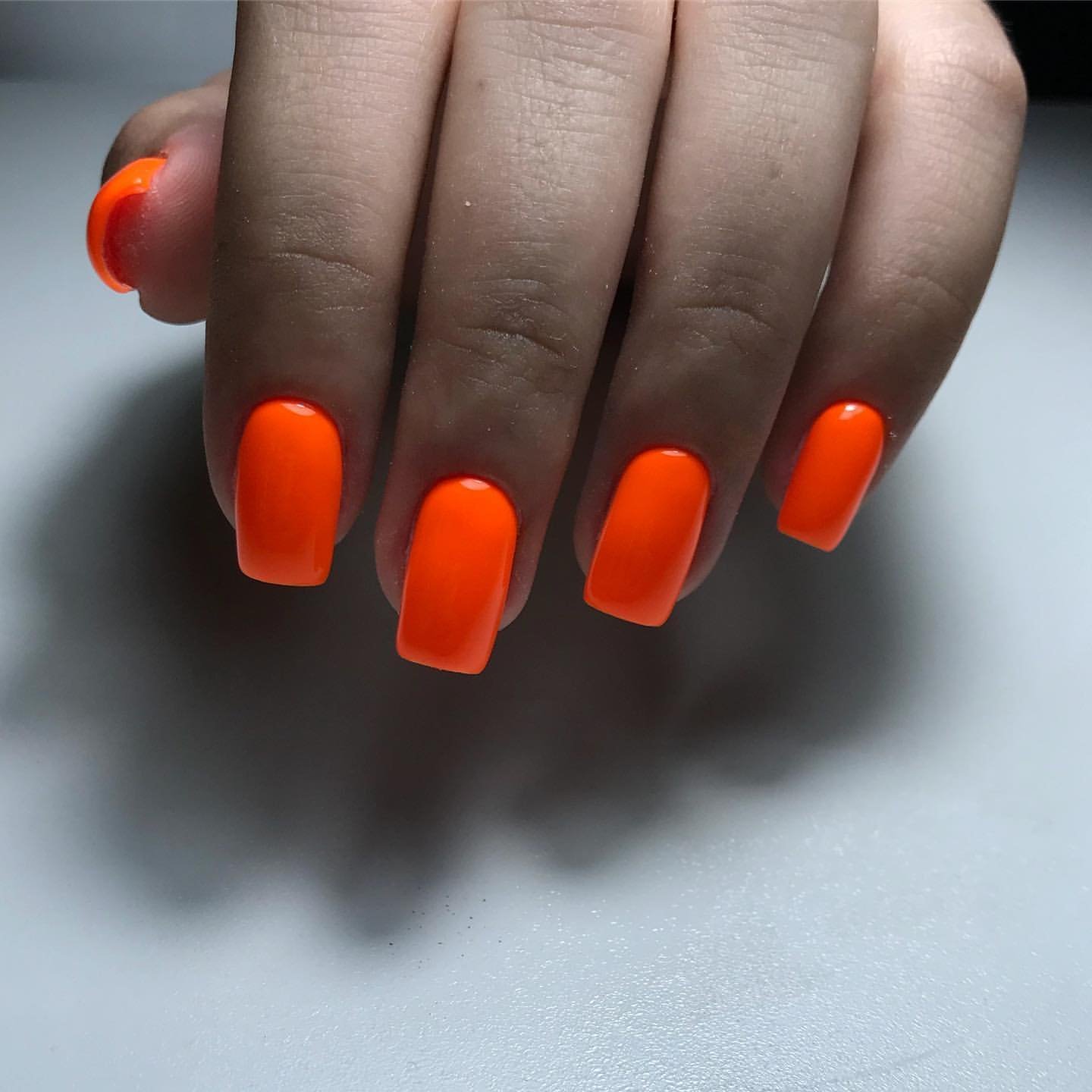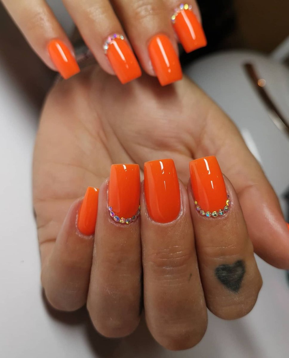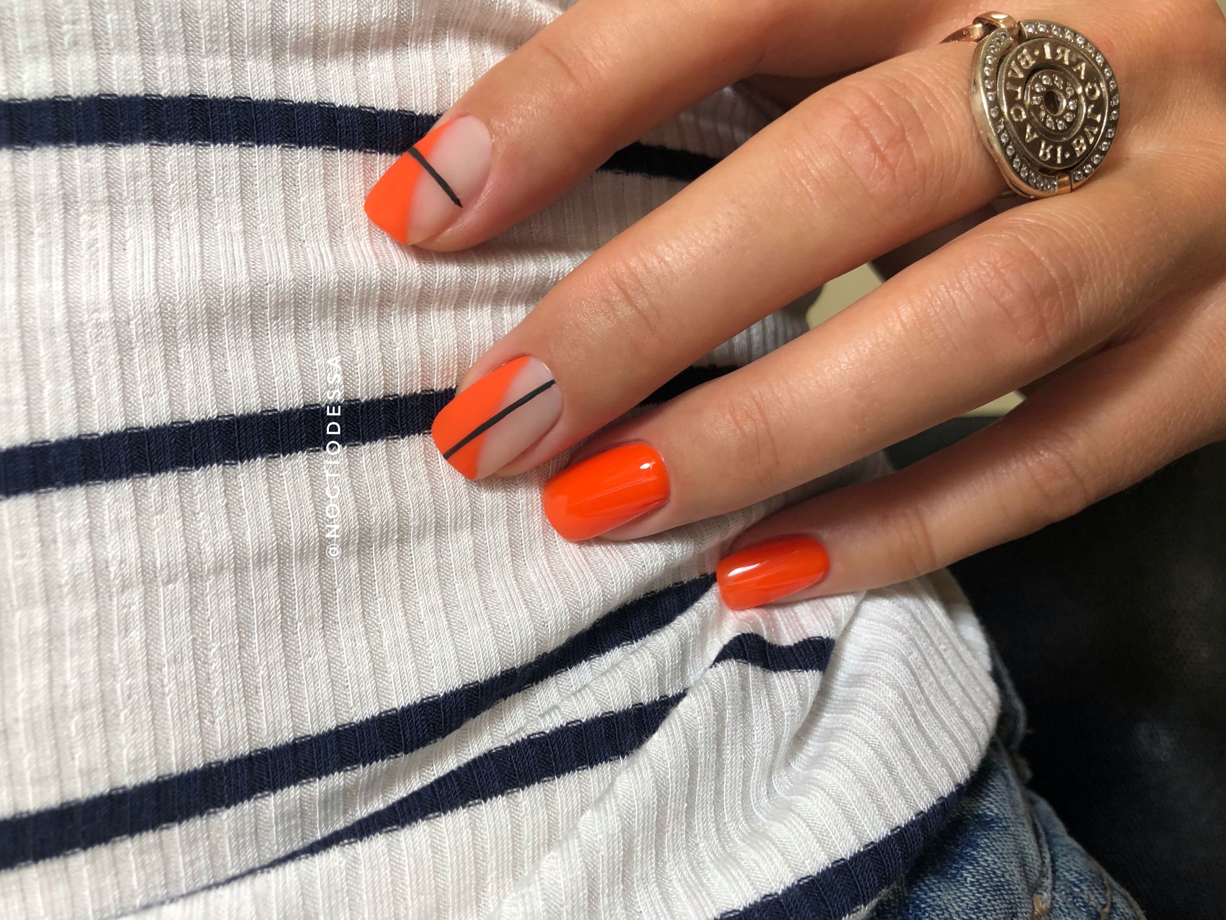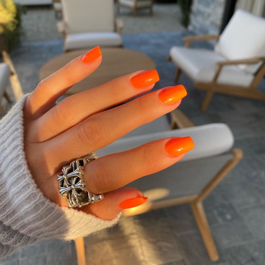 Неоновый оранжевый маникюр