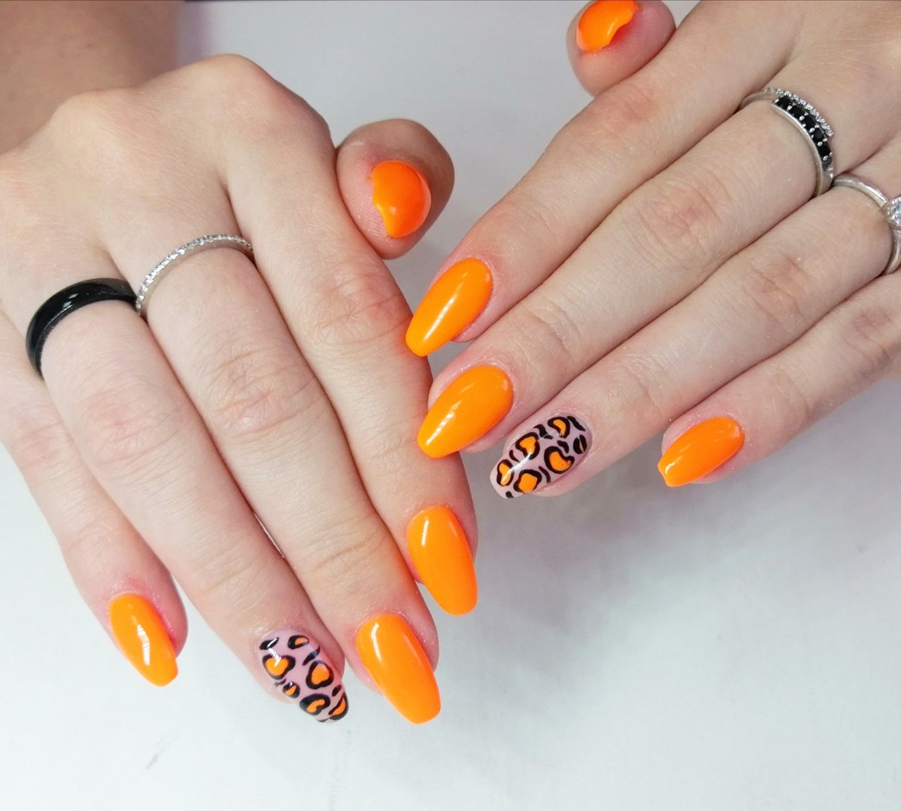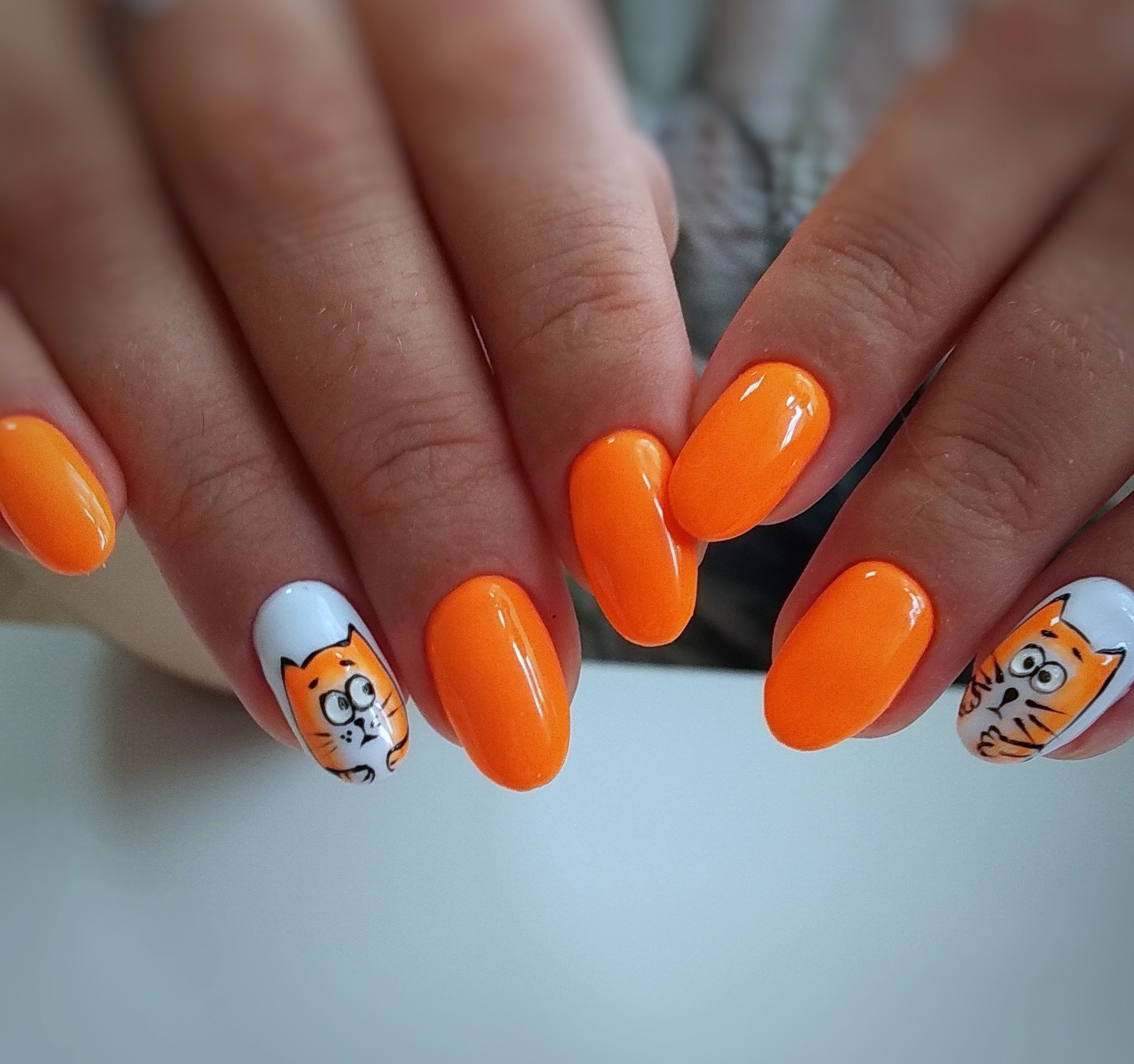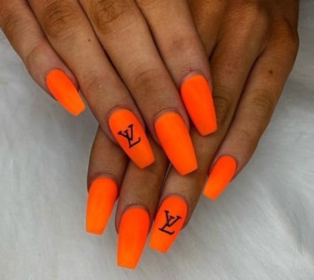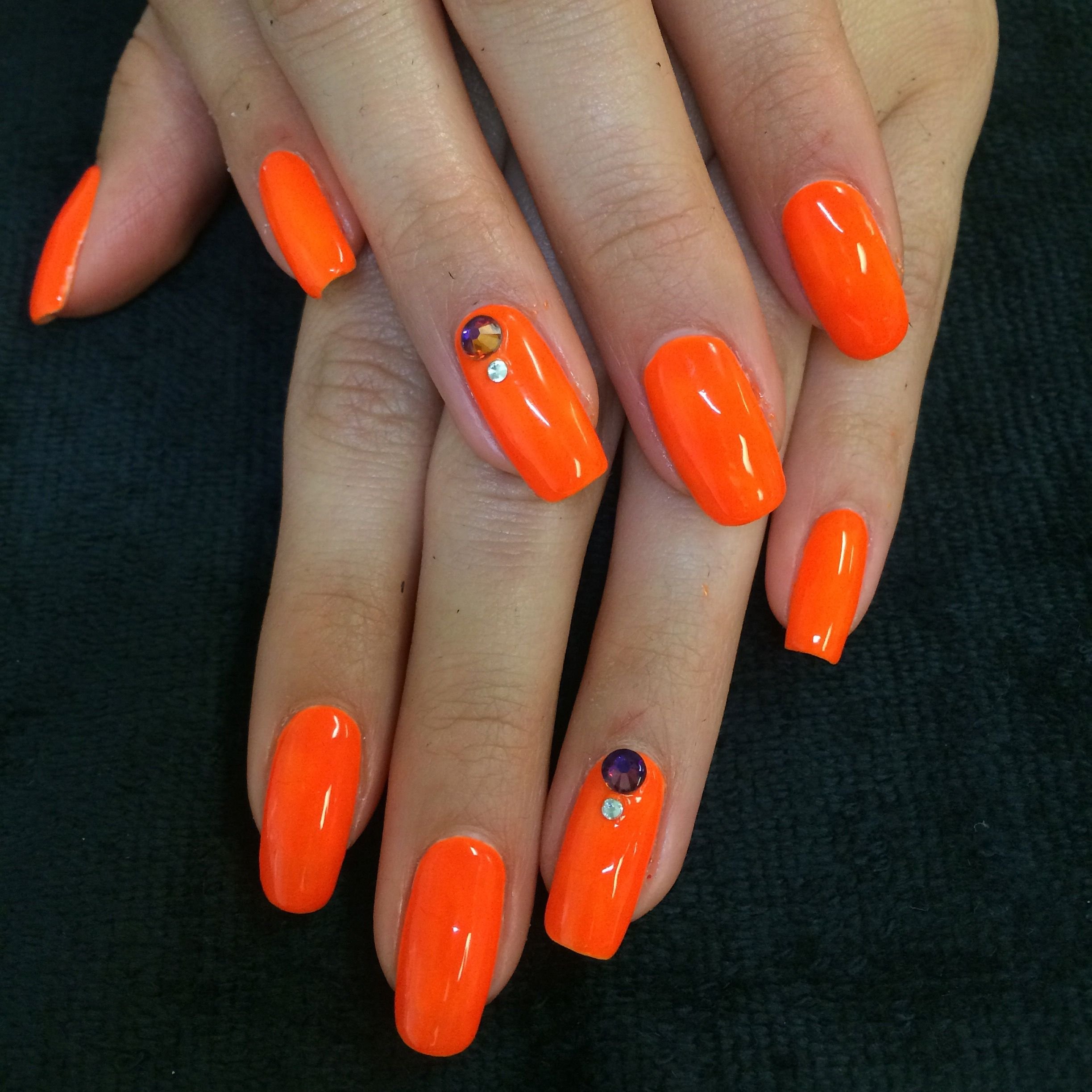 Неоновый оранжевый маникюр
