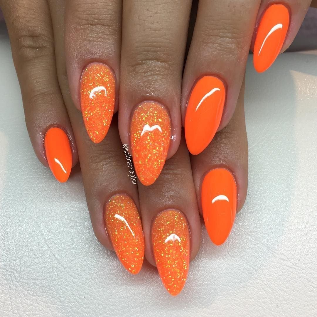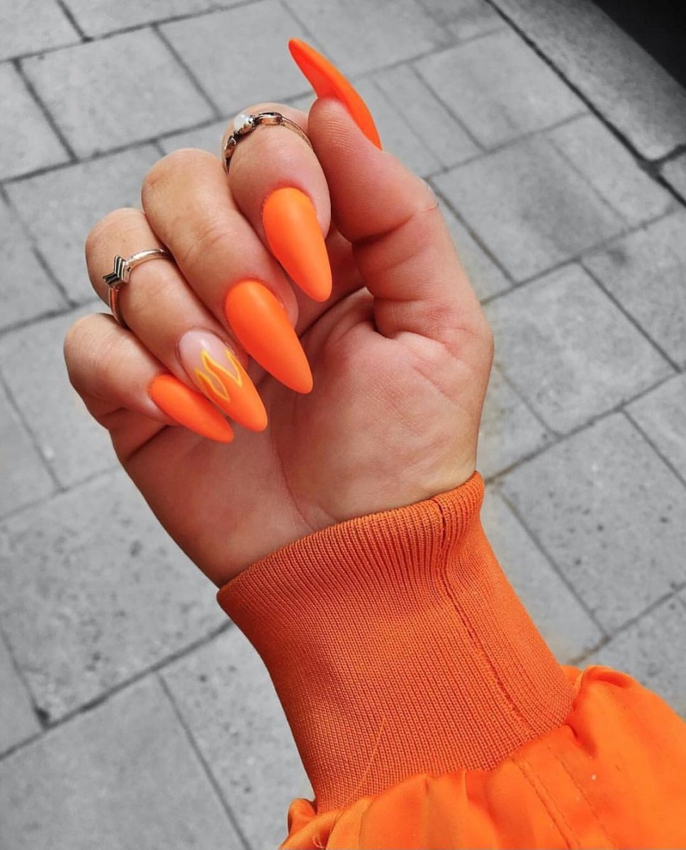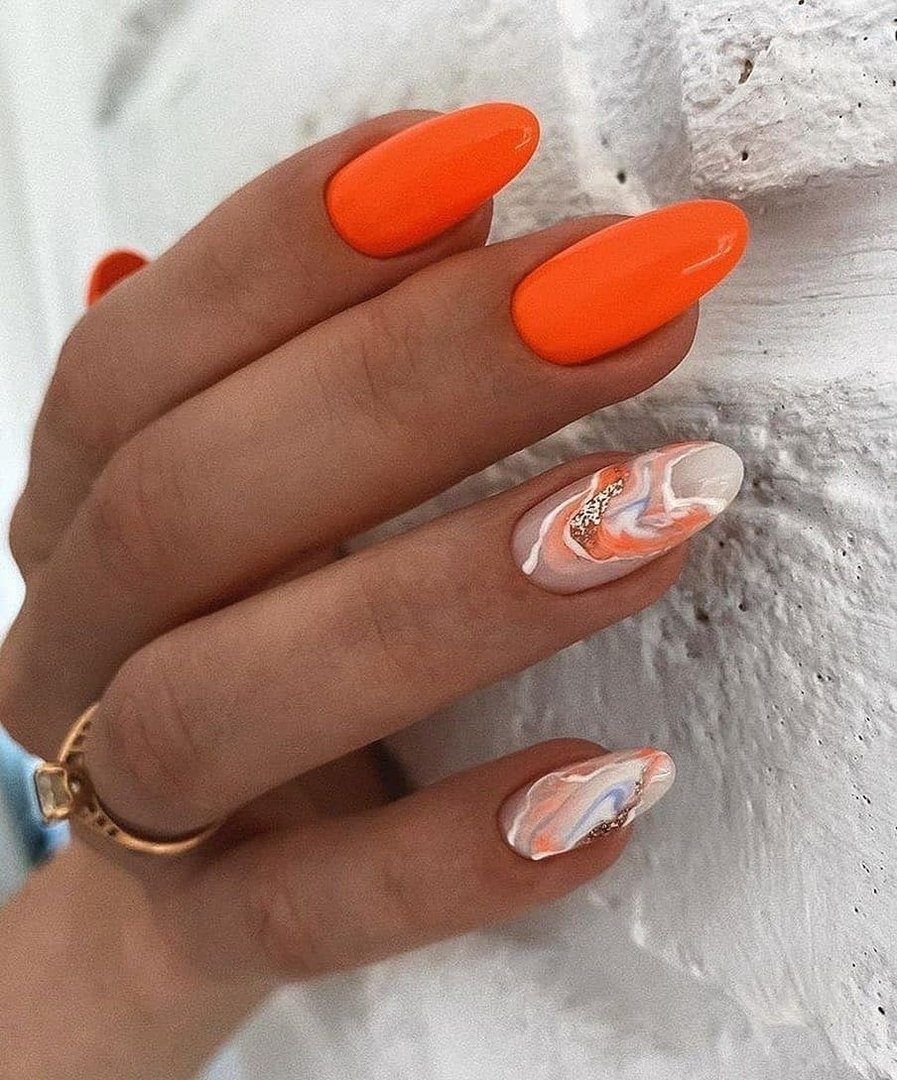 Оранжевые ногти миндаль 2022