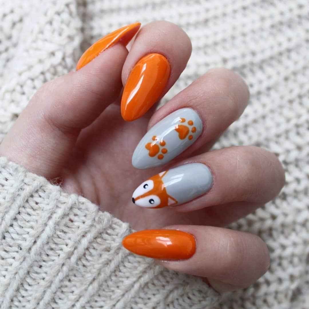 Маникюр оранжевый с серым