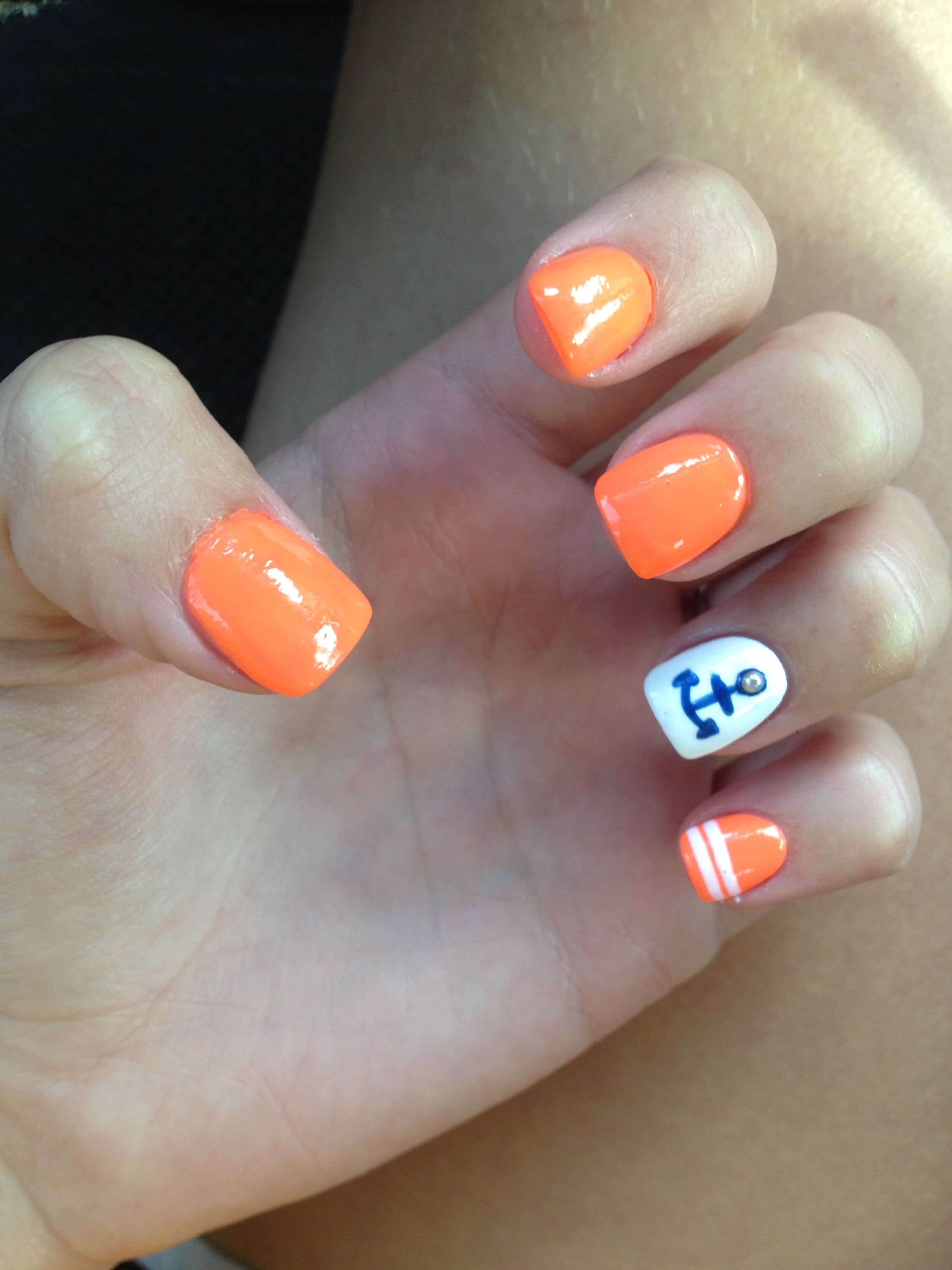 Маникюр оранжевый с синим