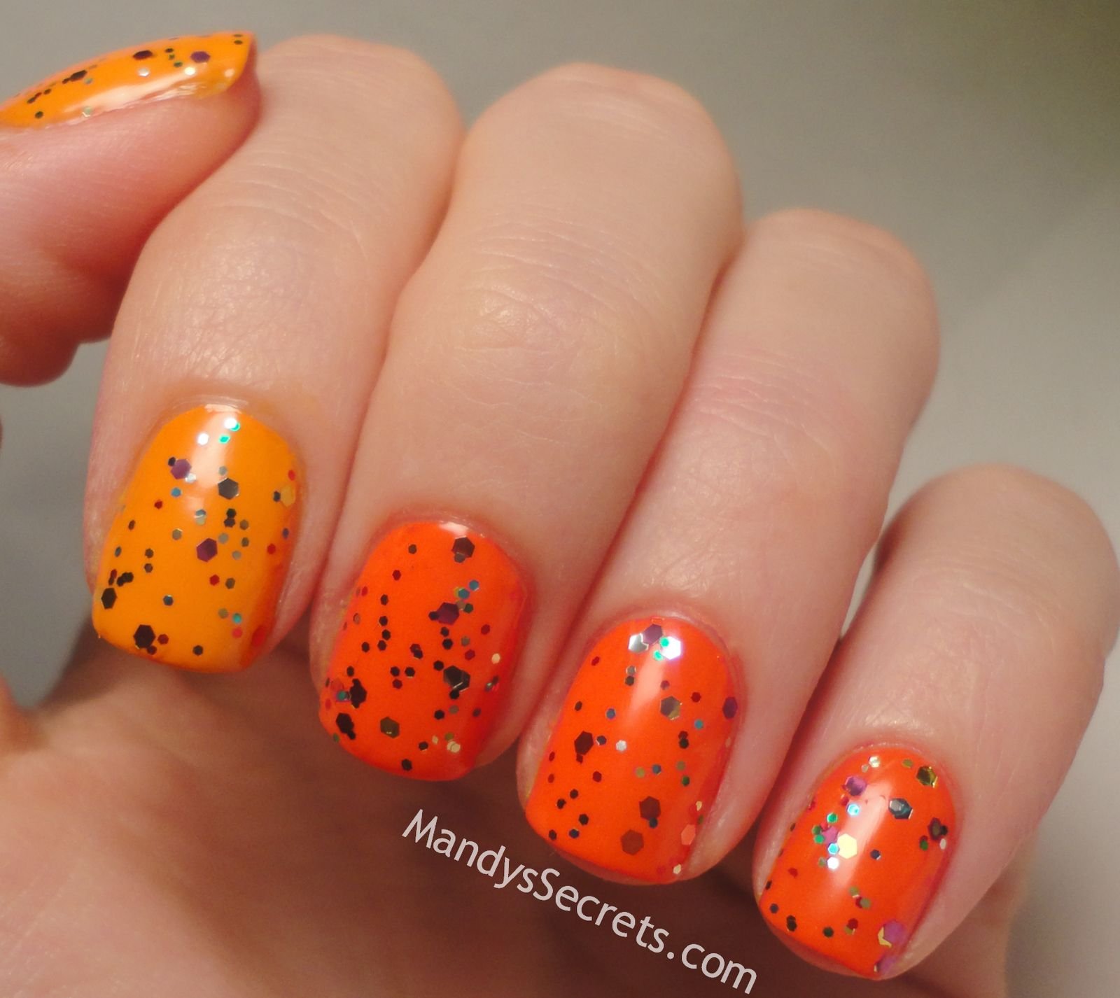 Оранжевый светоотражающий маникюр