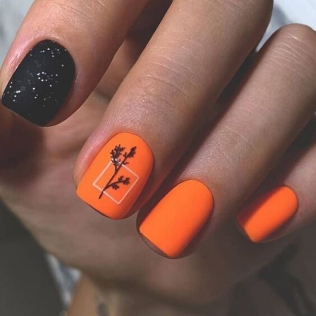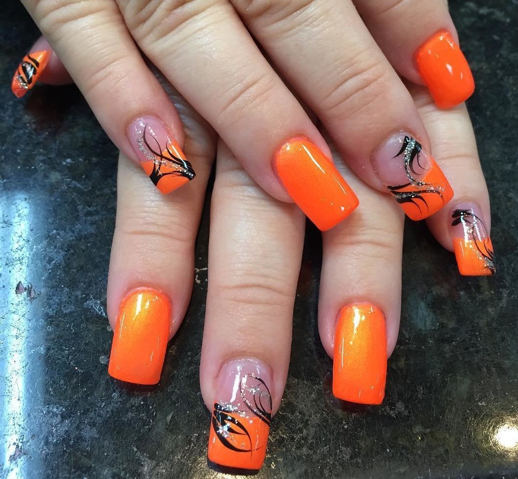 Ногти оранжевые с черным