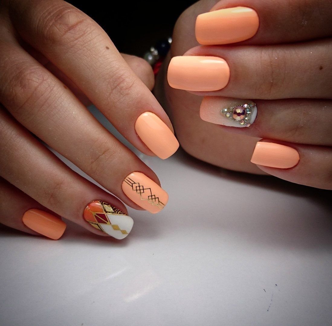 Маникюр персикового цвета