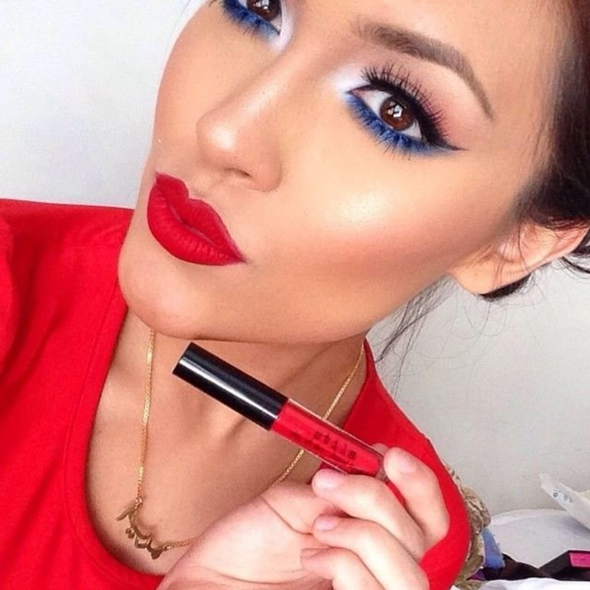 Макияж с красной тушью