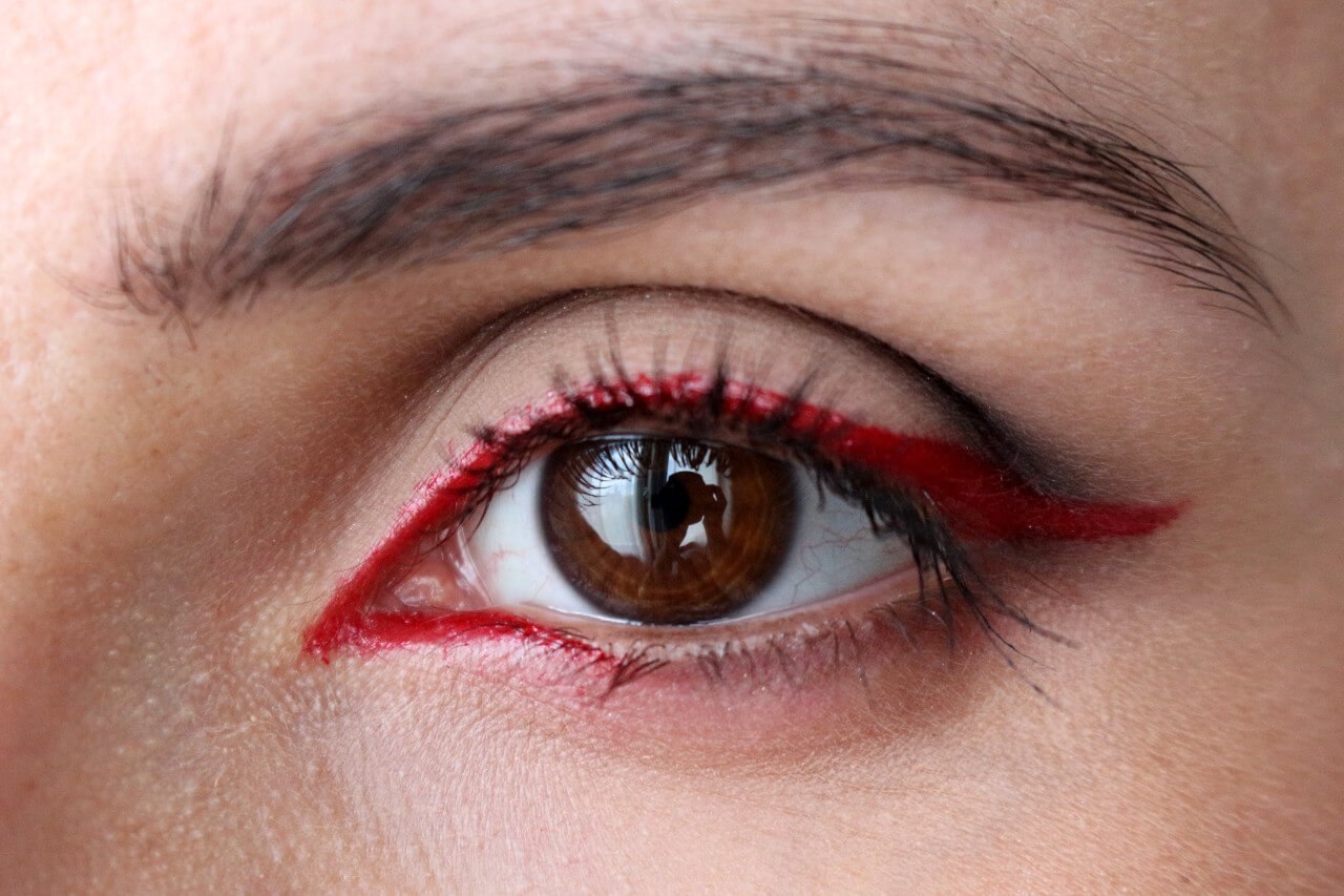 Макияж с красной подводкой для глаз