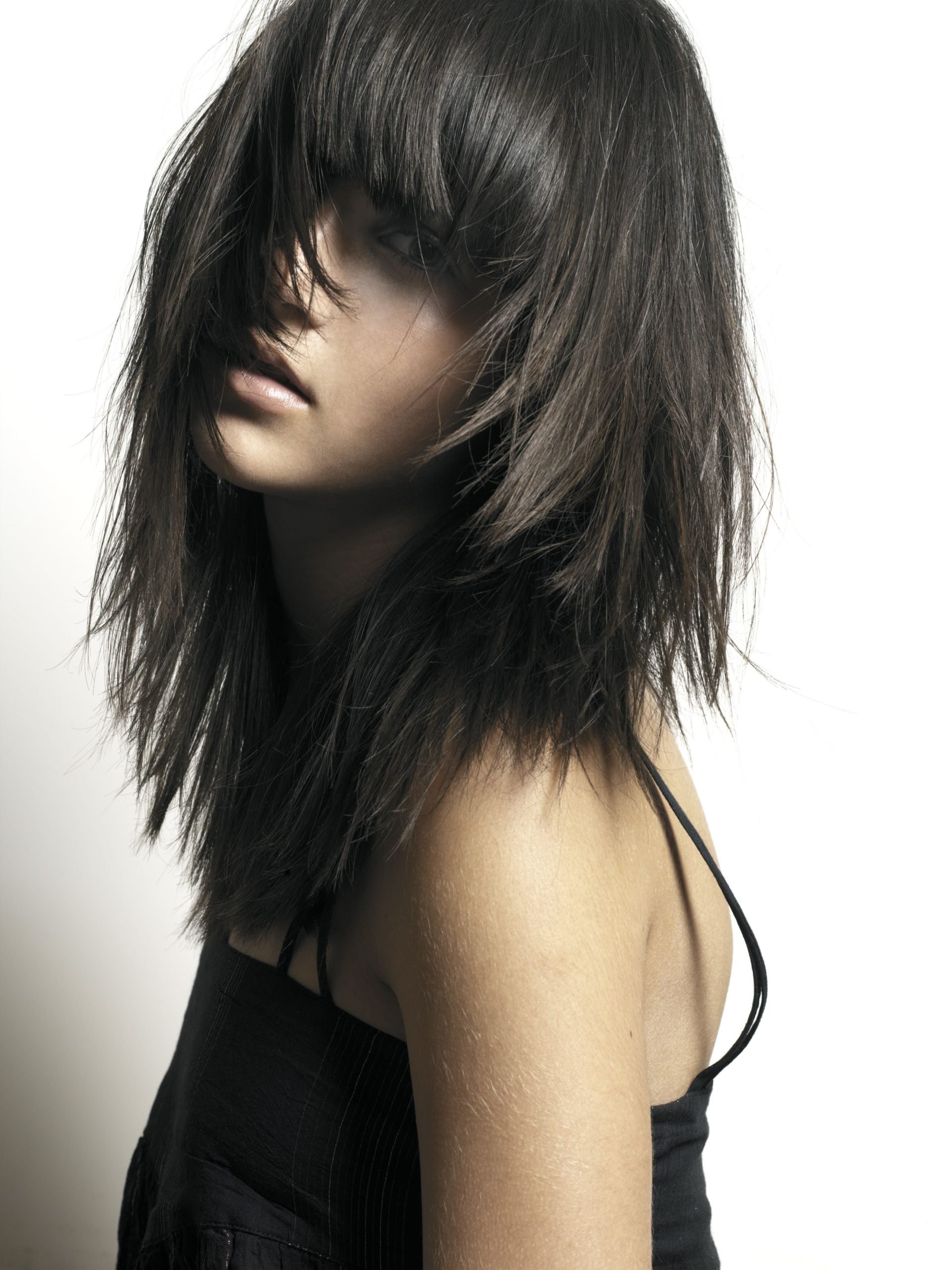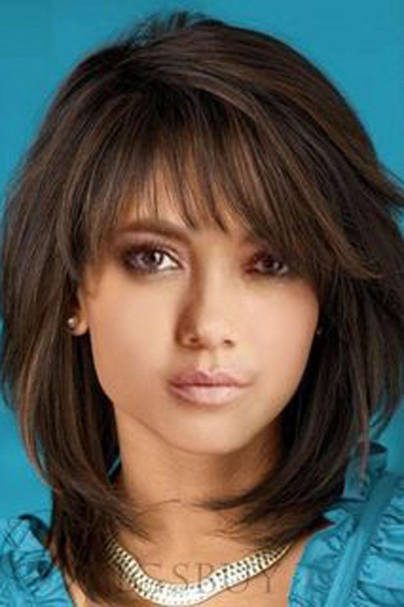 Каскад Шегги на средние волосы с челкой