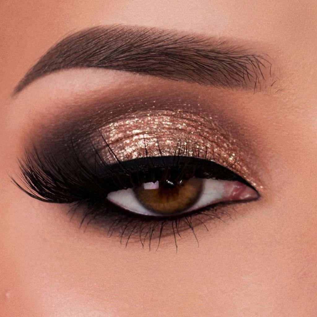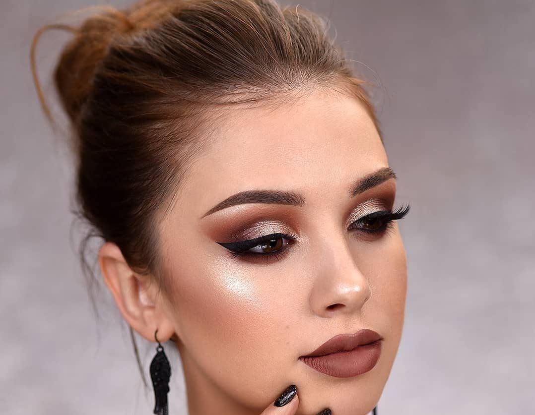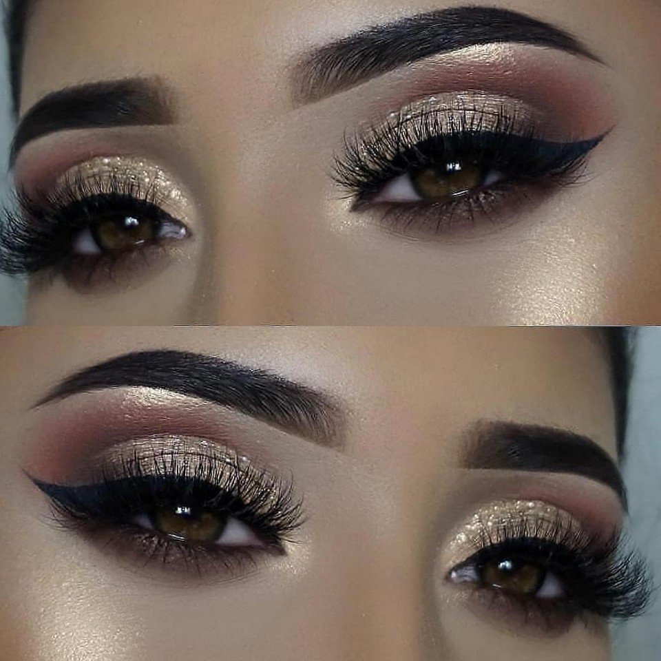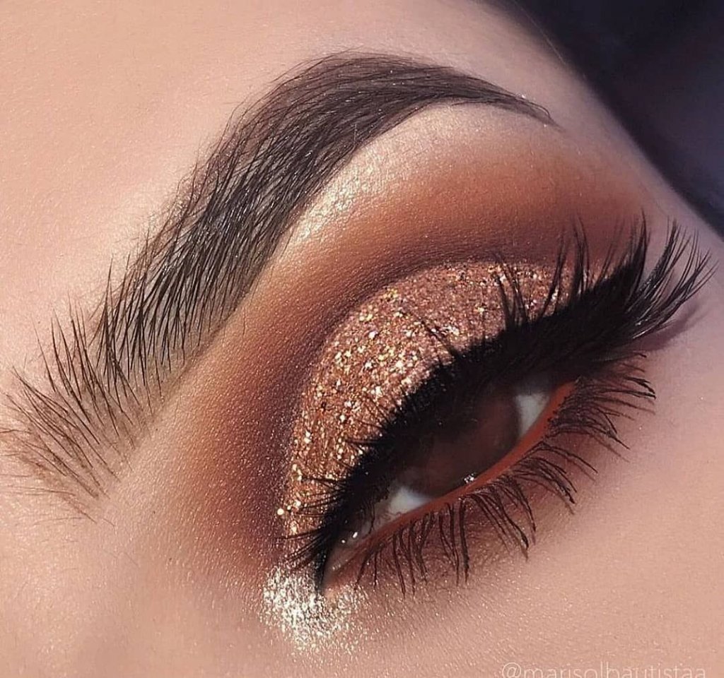 Блестящий макияж для карих глаз