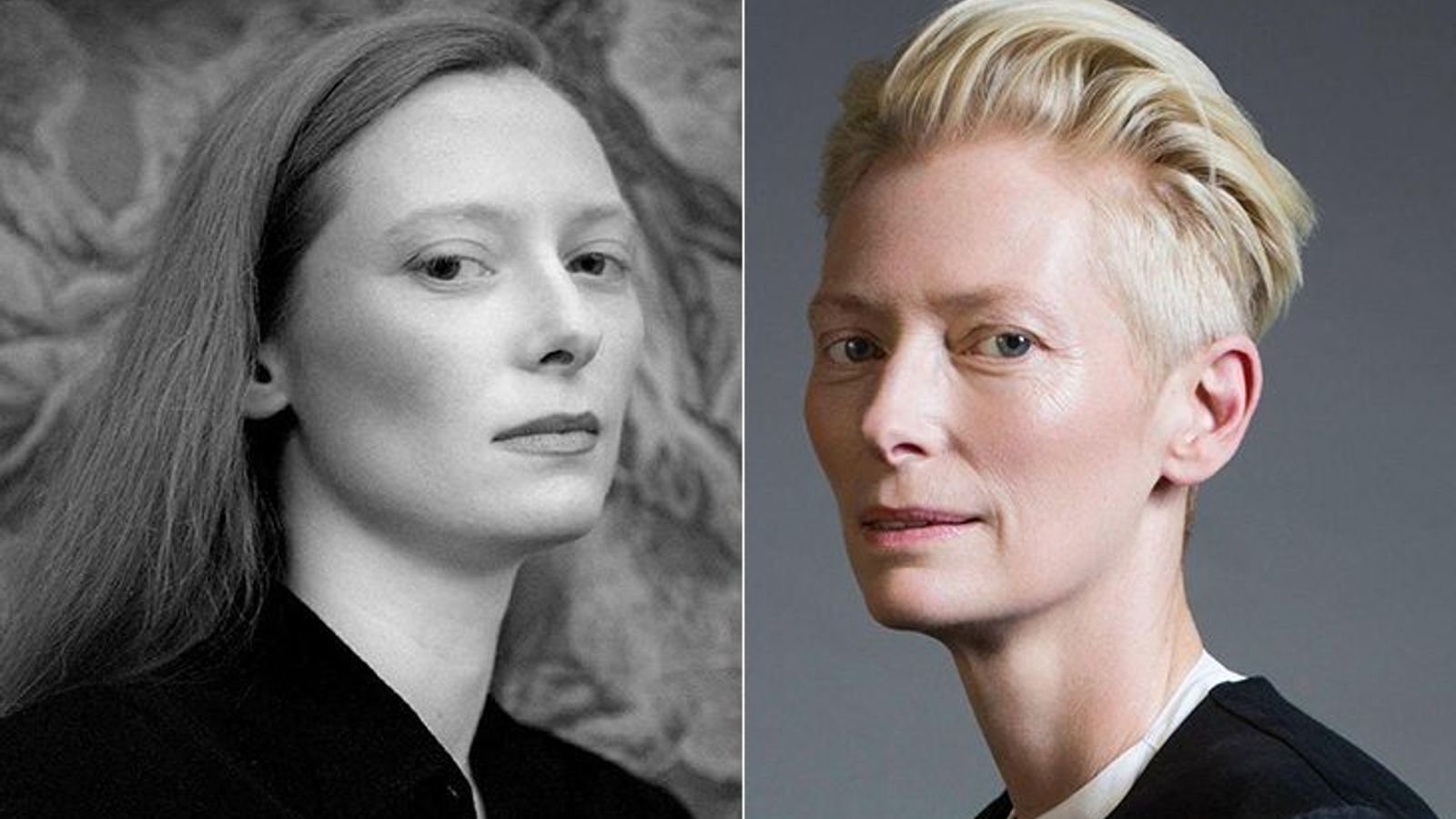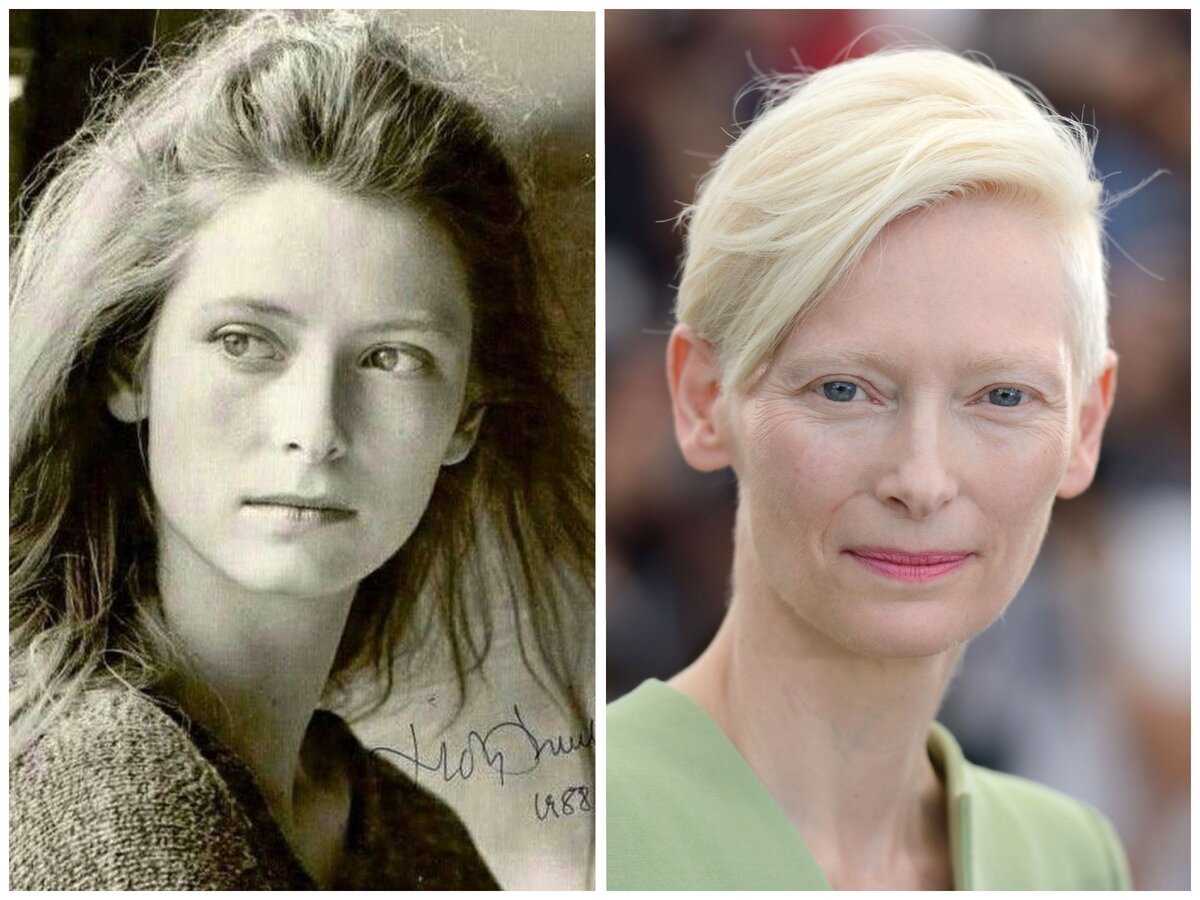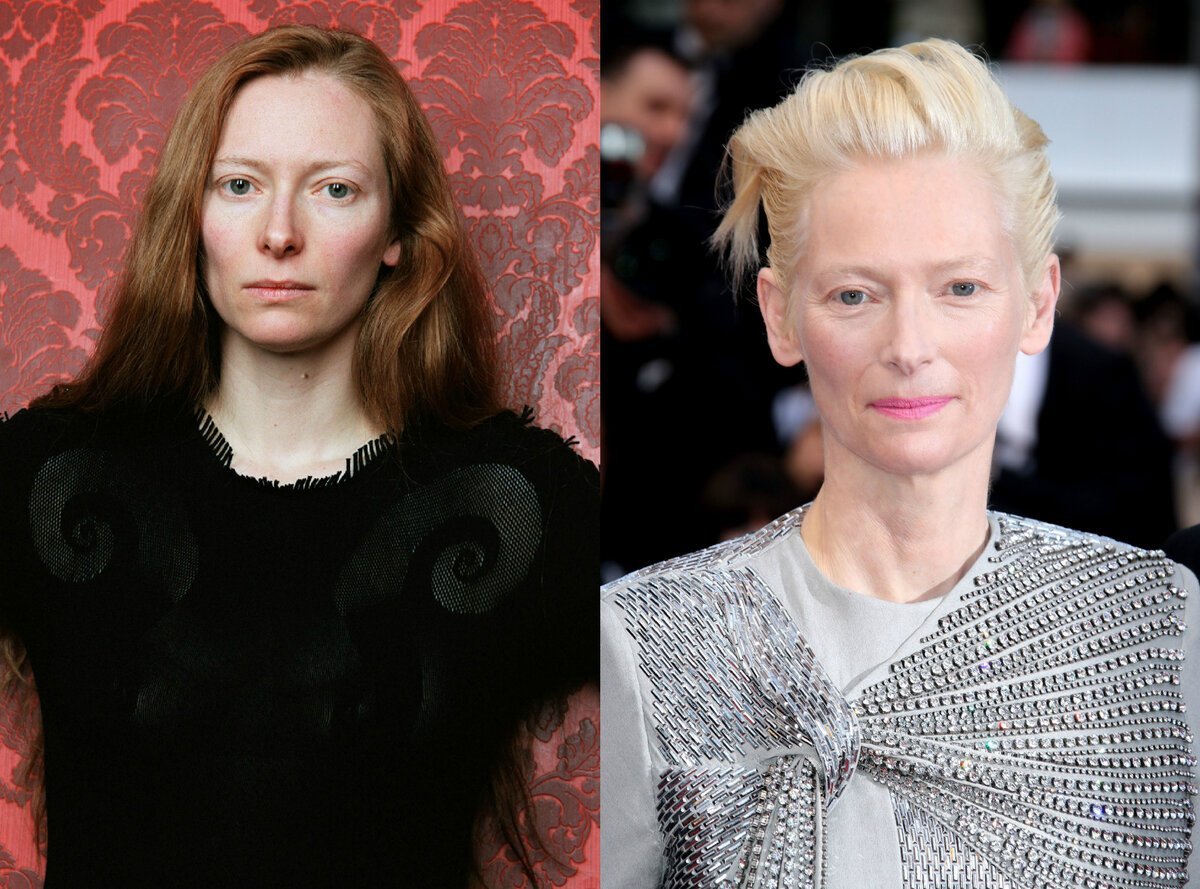 Тильда Суинтон в молодости и сейчас