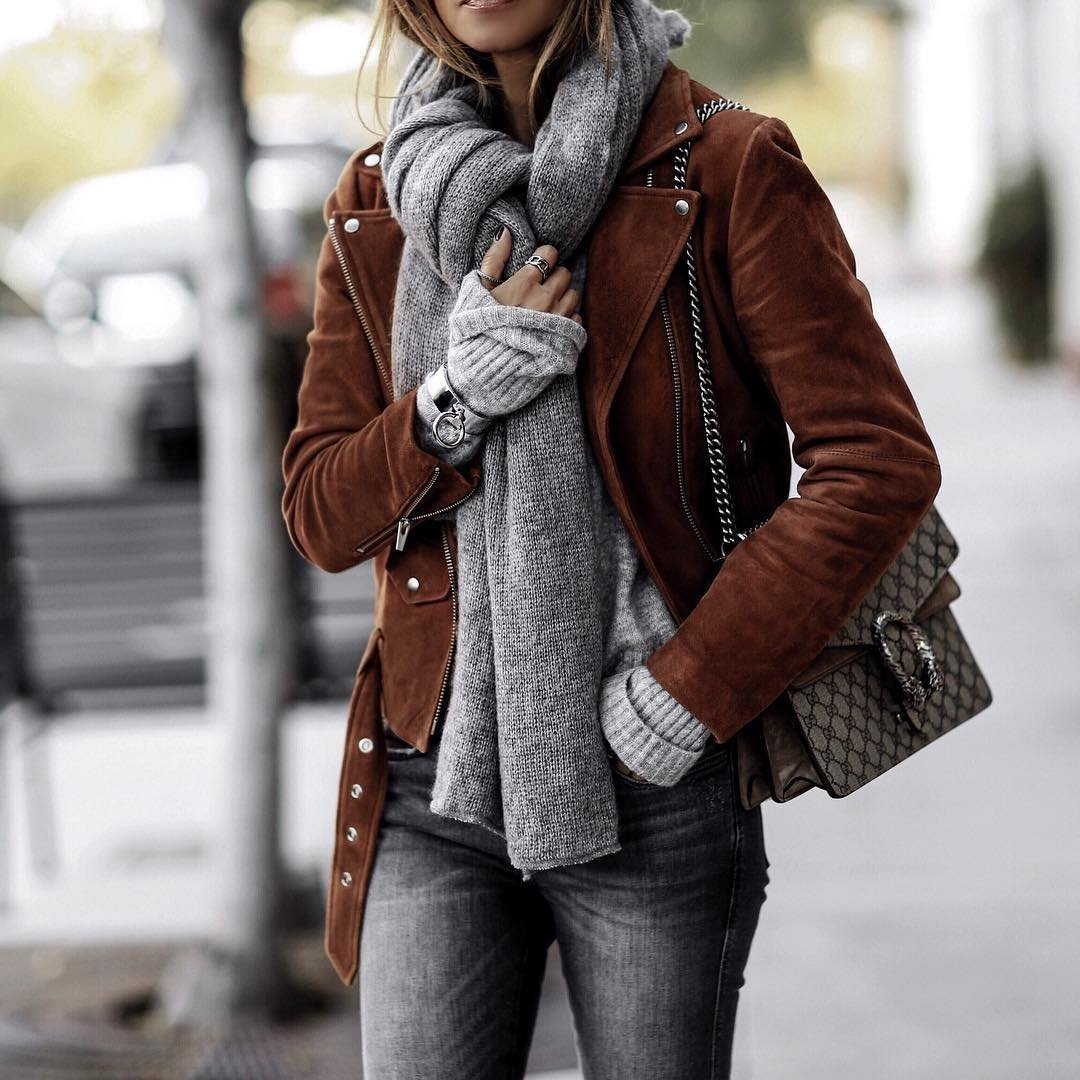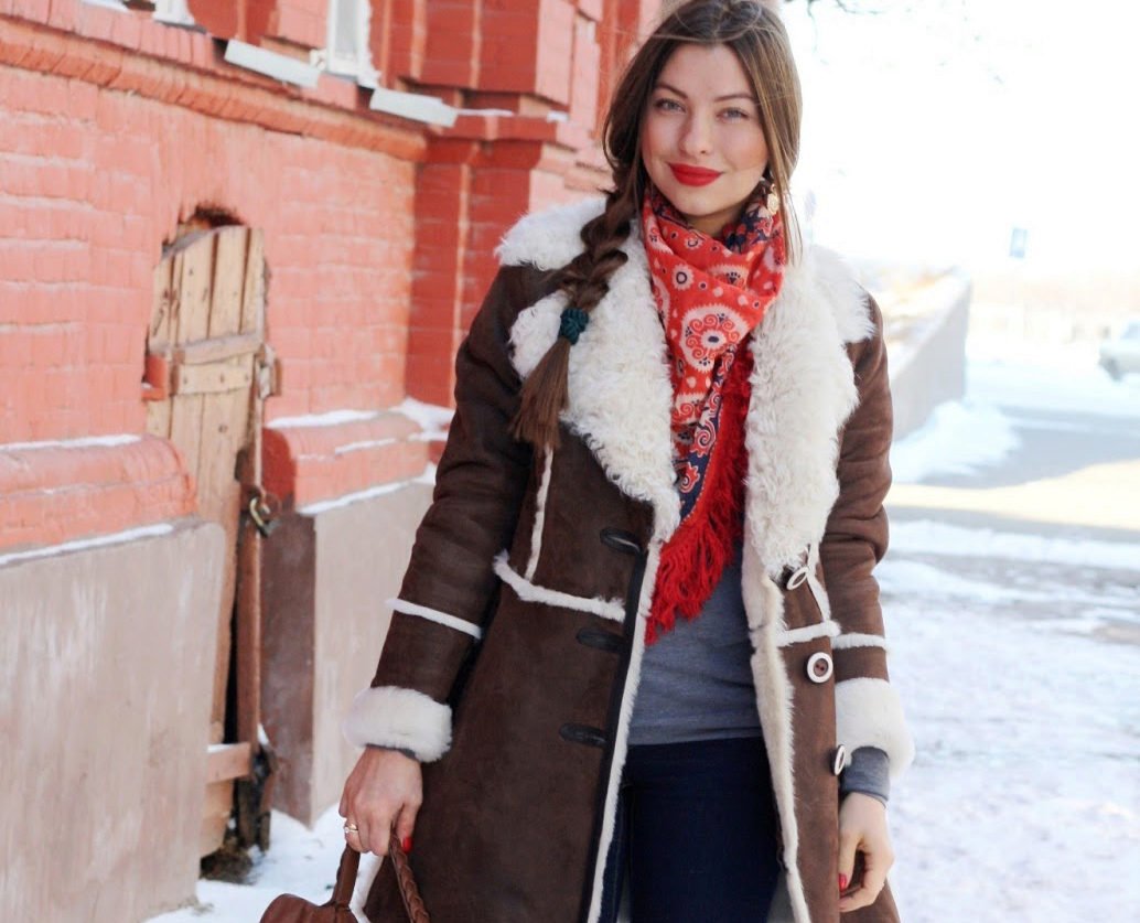 Как носить шарф с дубленкой