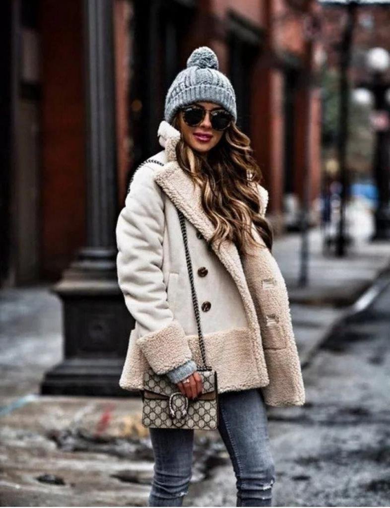 Образ с бежевой дубленкой