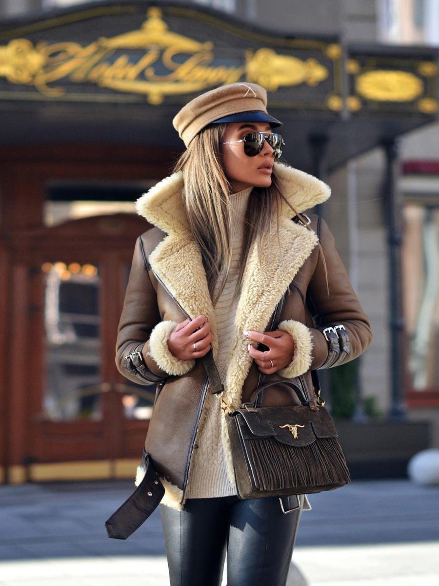 Look с дубленкой Авиатор