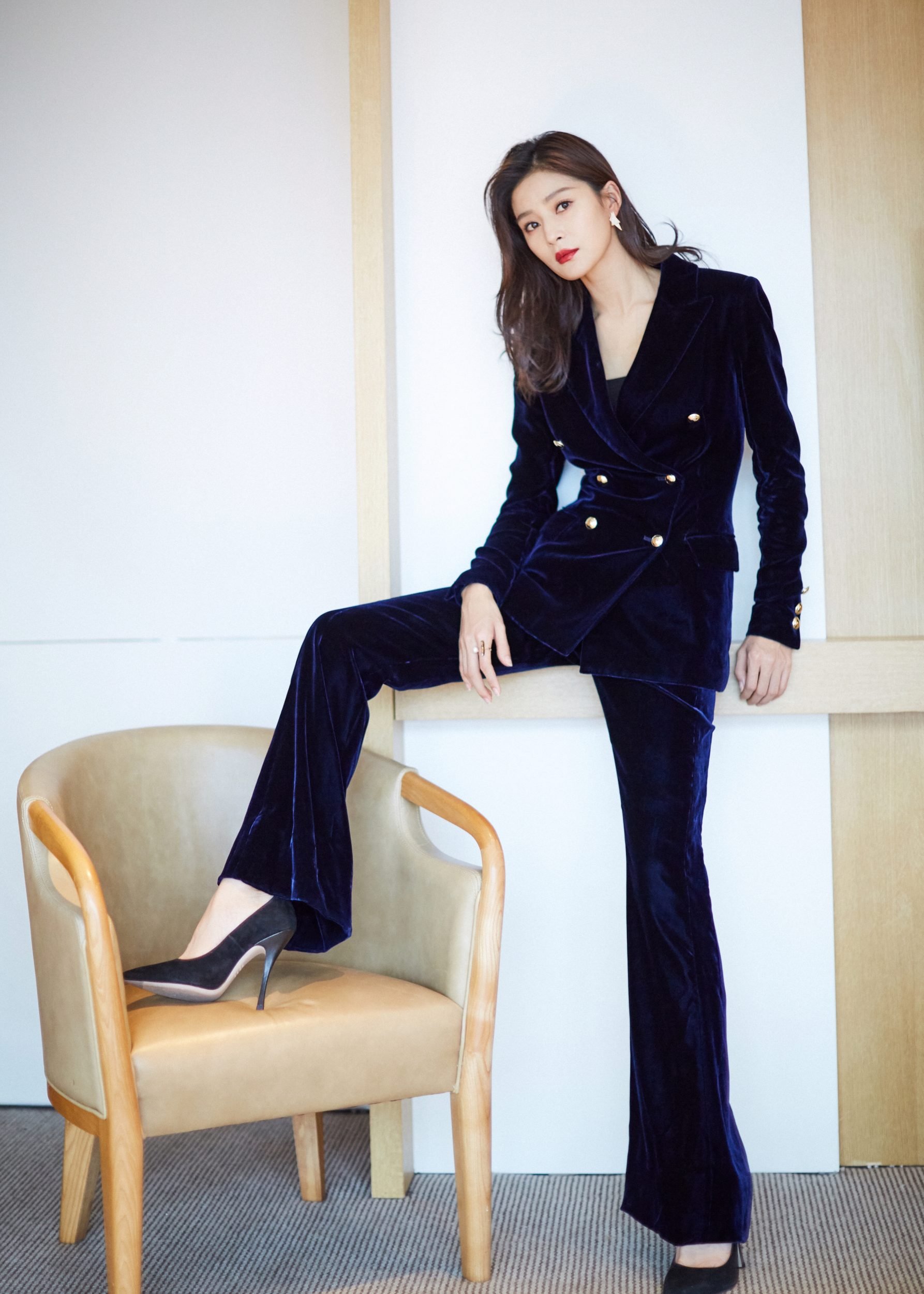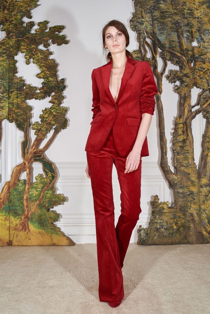 Брючный костюм из красного бархата
