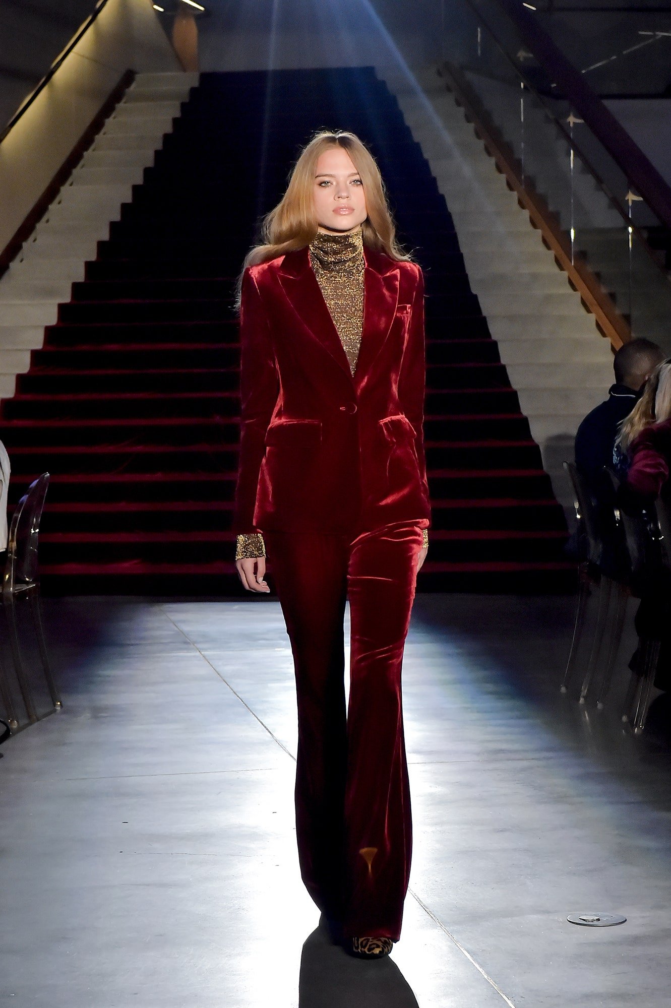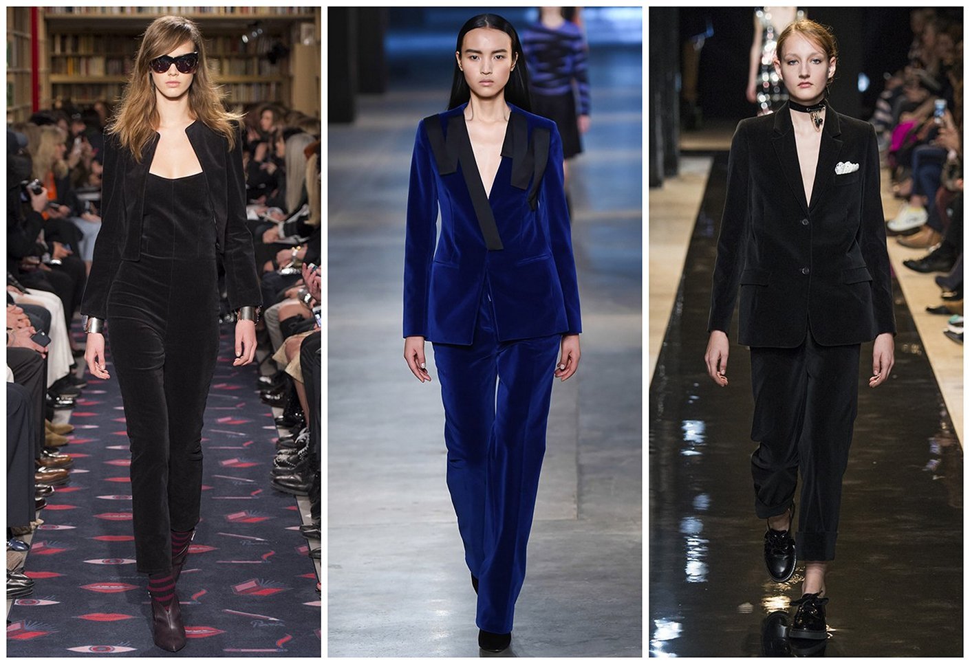 Брючный бархатный костюм на подиумах