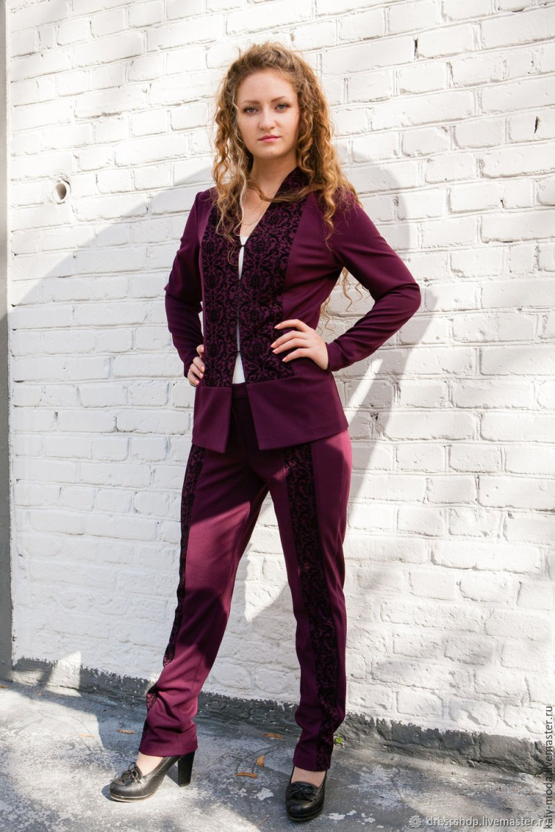 Брючный костюм из бархата женский