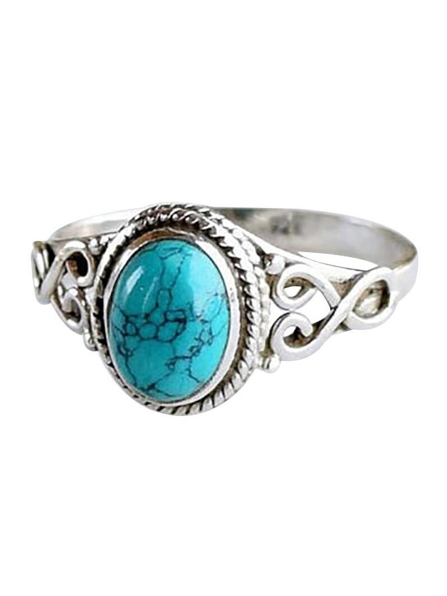 Sterling Silver Ring Oval Cut natural Bohemia Turquoise Jewelry
