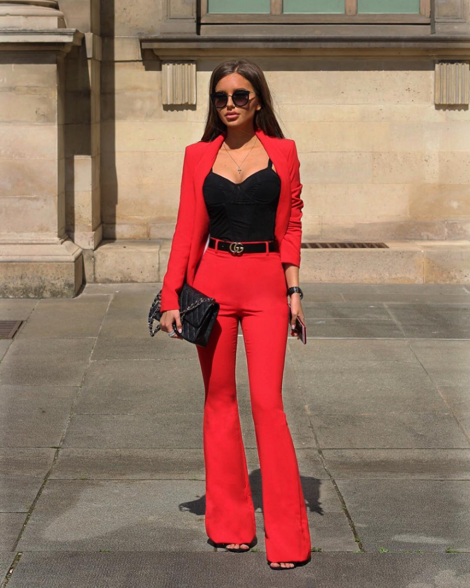 Красный брючный костюм с топом