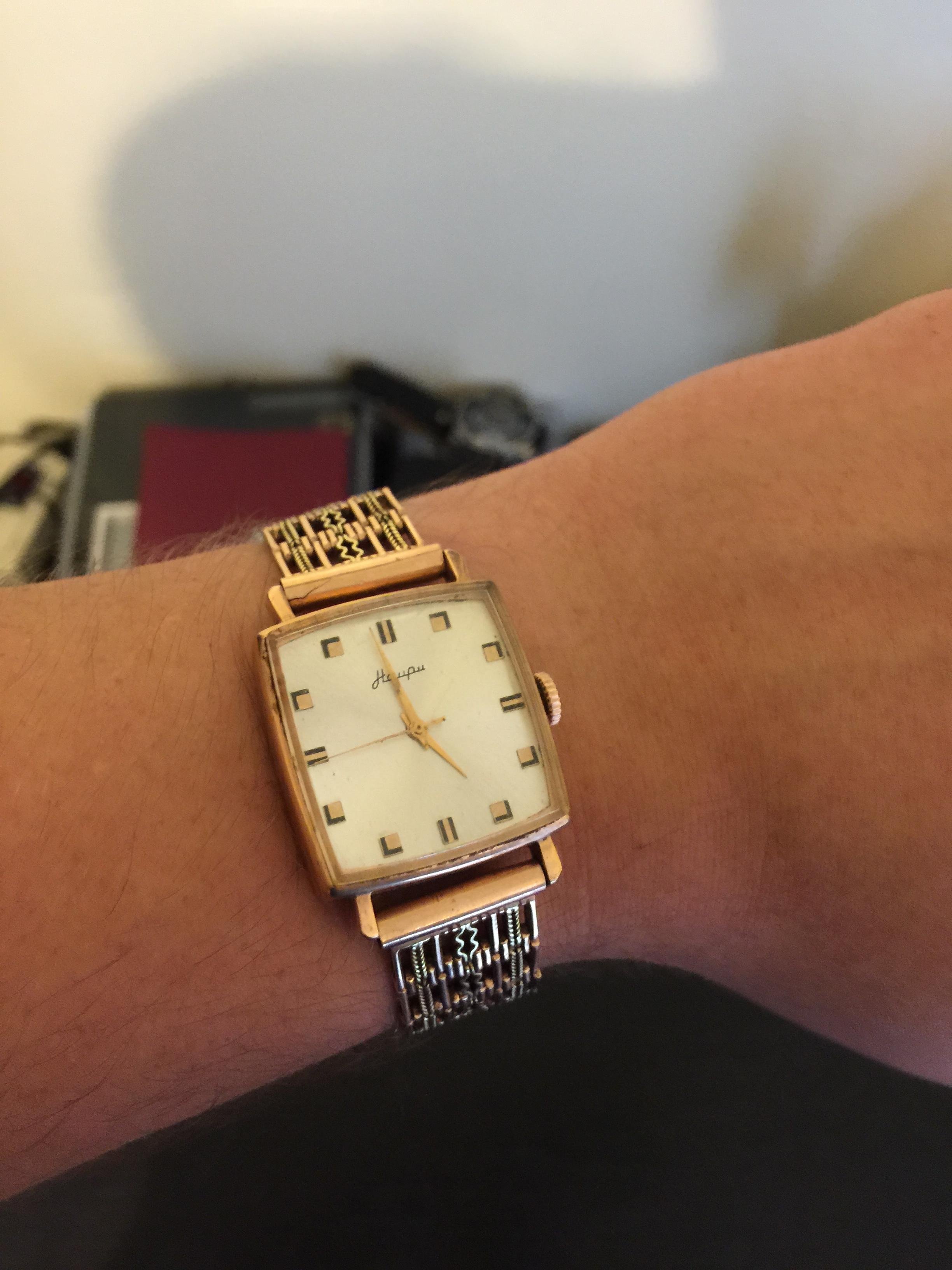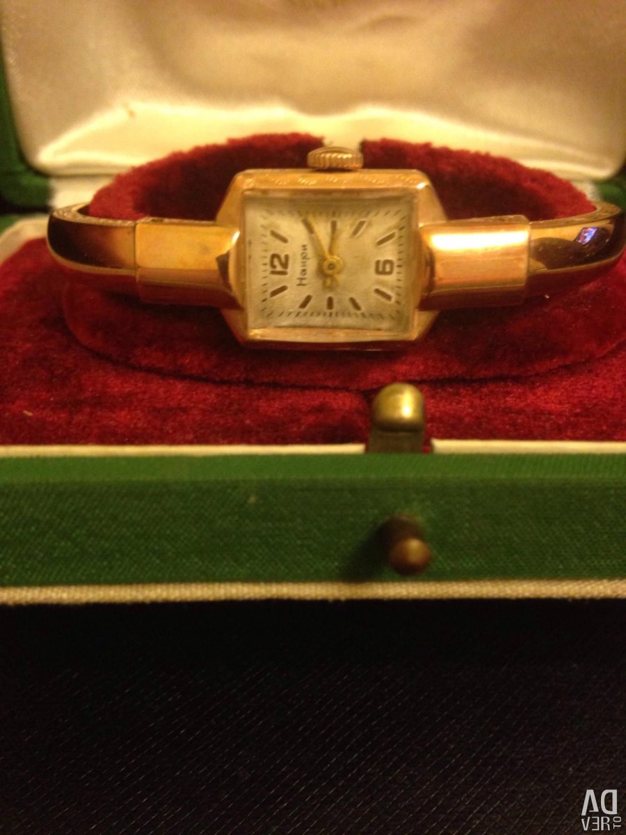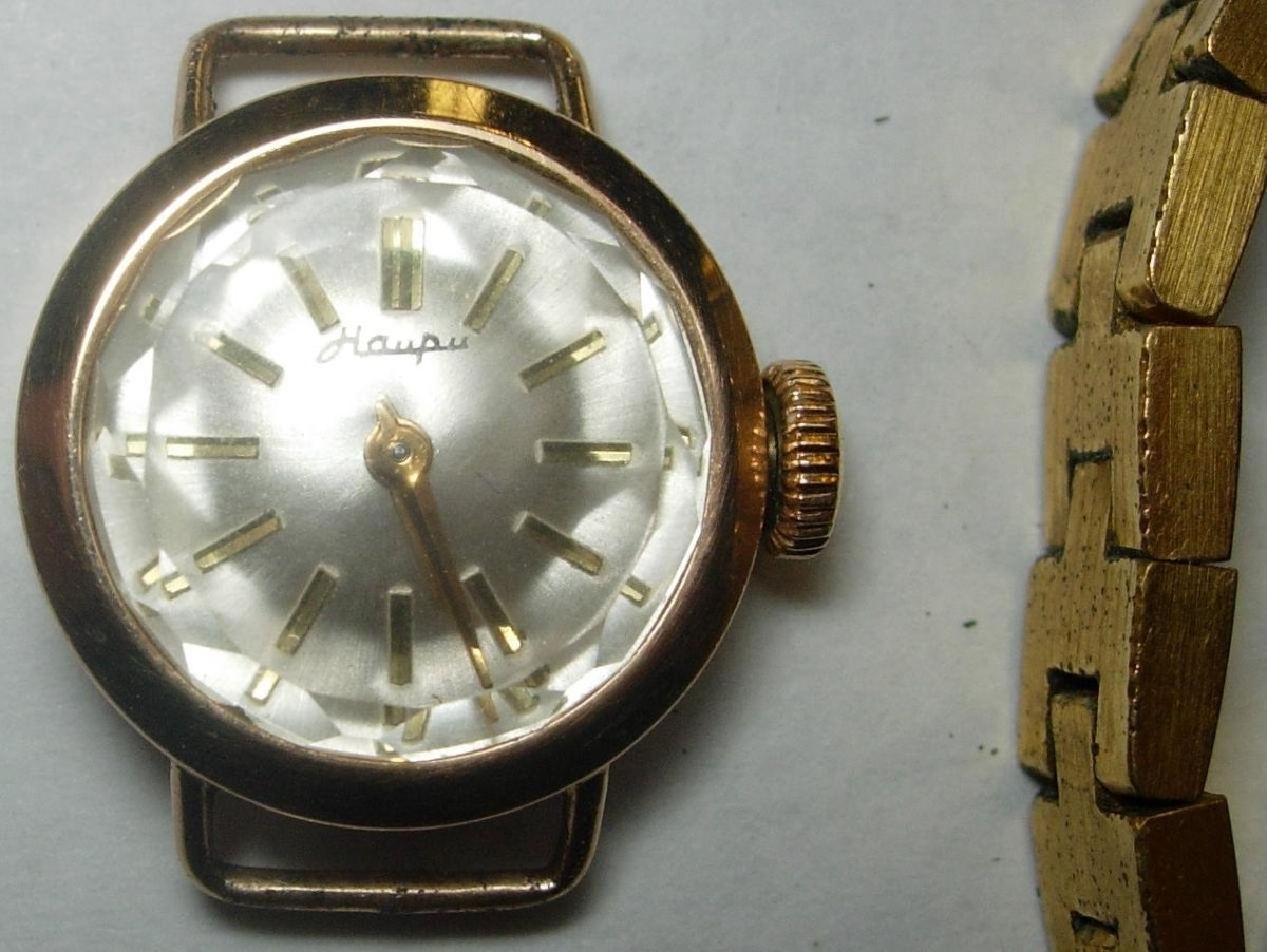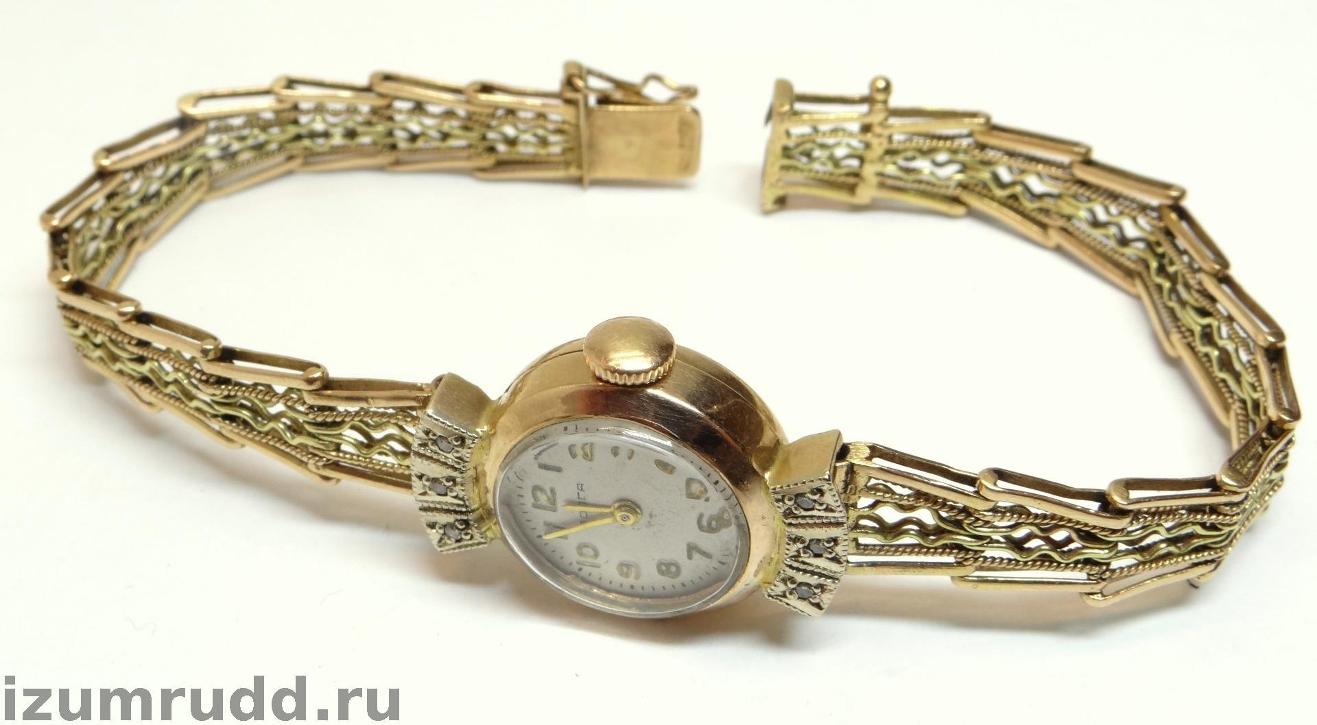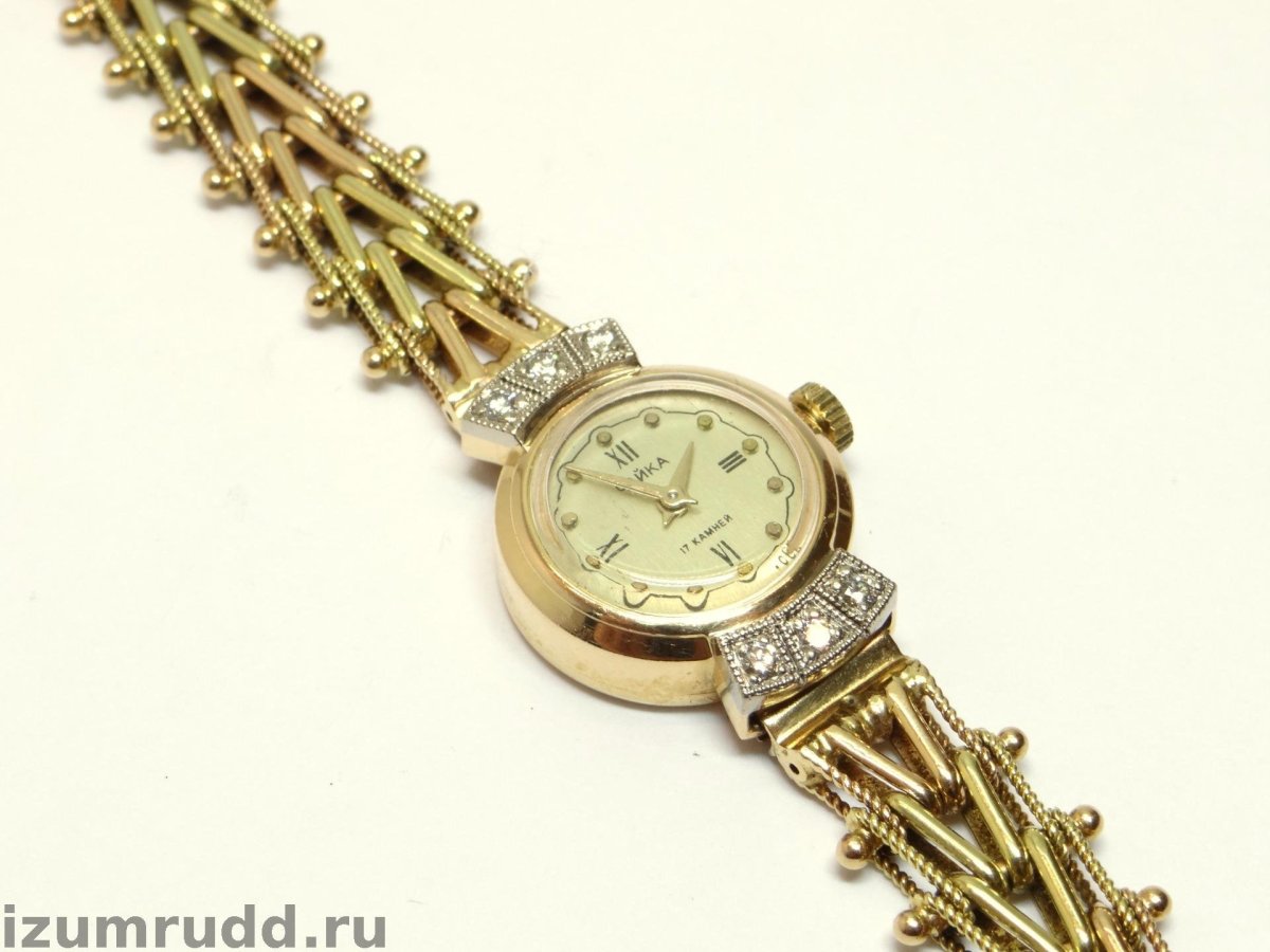 Часы золотые Ника кварц 7524 с золотым браслетом