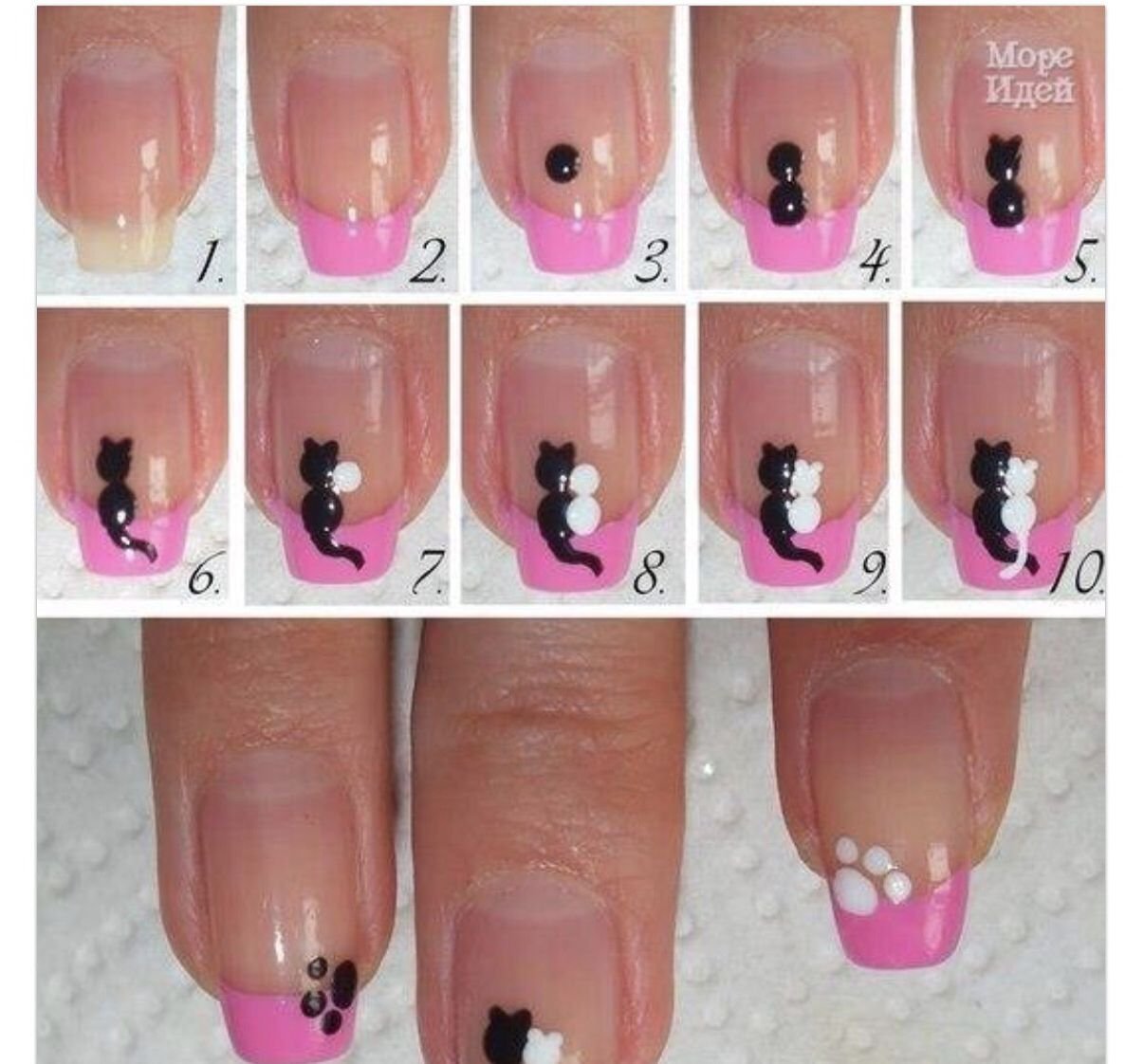 Маникюр на короткие ногти с котиками