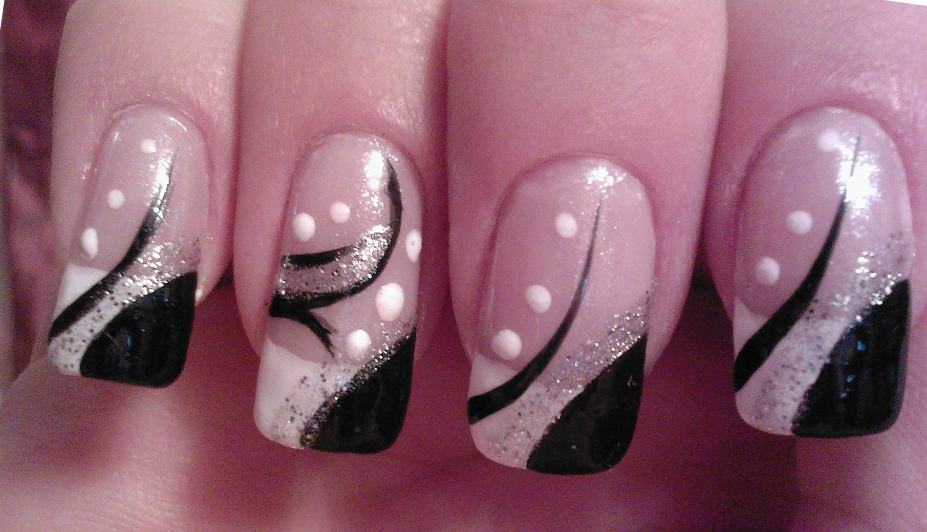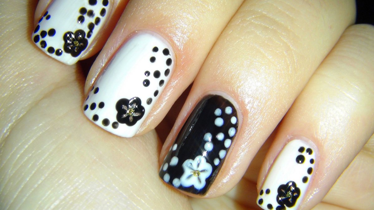 Чёрно белые ногти для начинающих