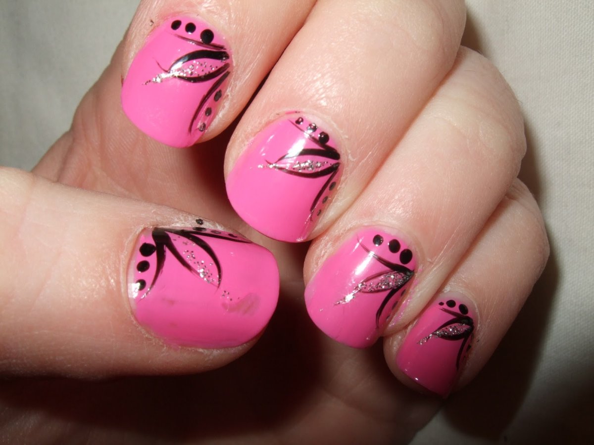 Черно-розовый маникюр легкий